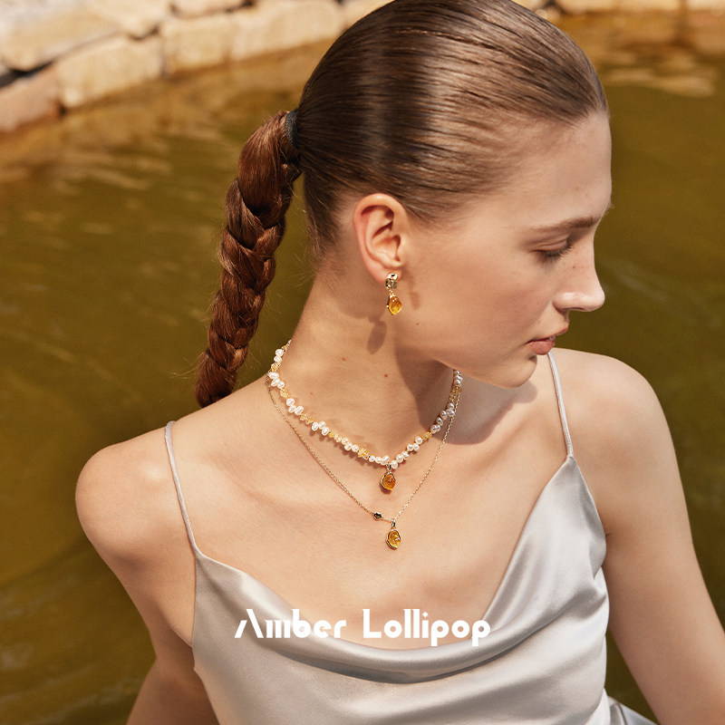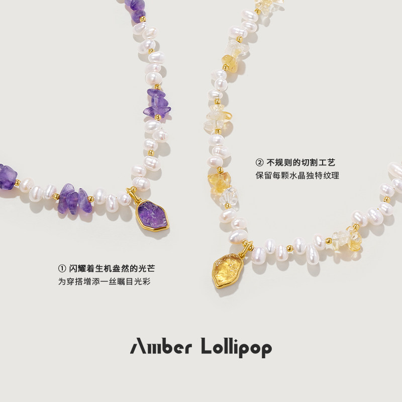 Amber Lollipop淡水珍珠项链女款紫水晶锁骨链轻奢宝石小米珠颈链