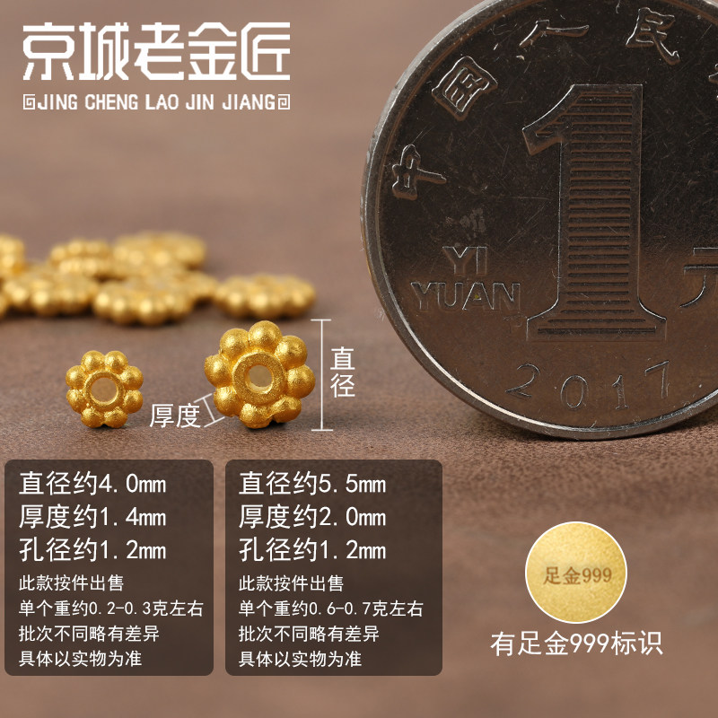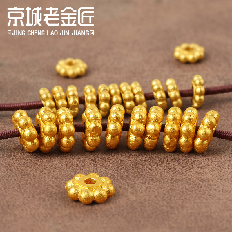古法金24K文玩小配件足金999黄金迷你花纹隔片手串男女款实心隔珠