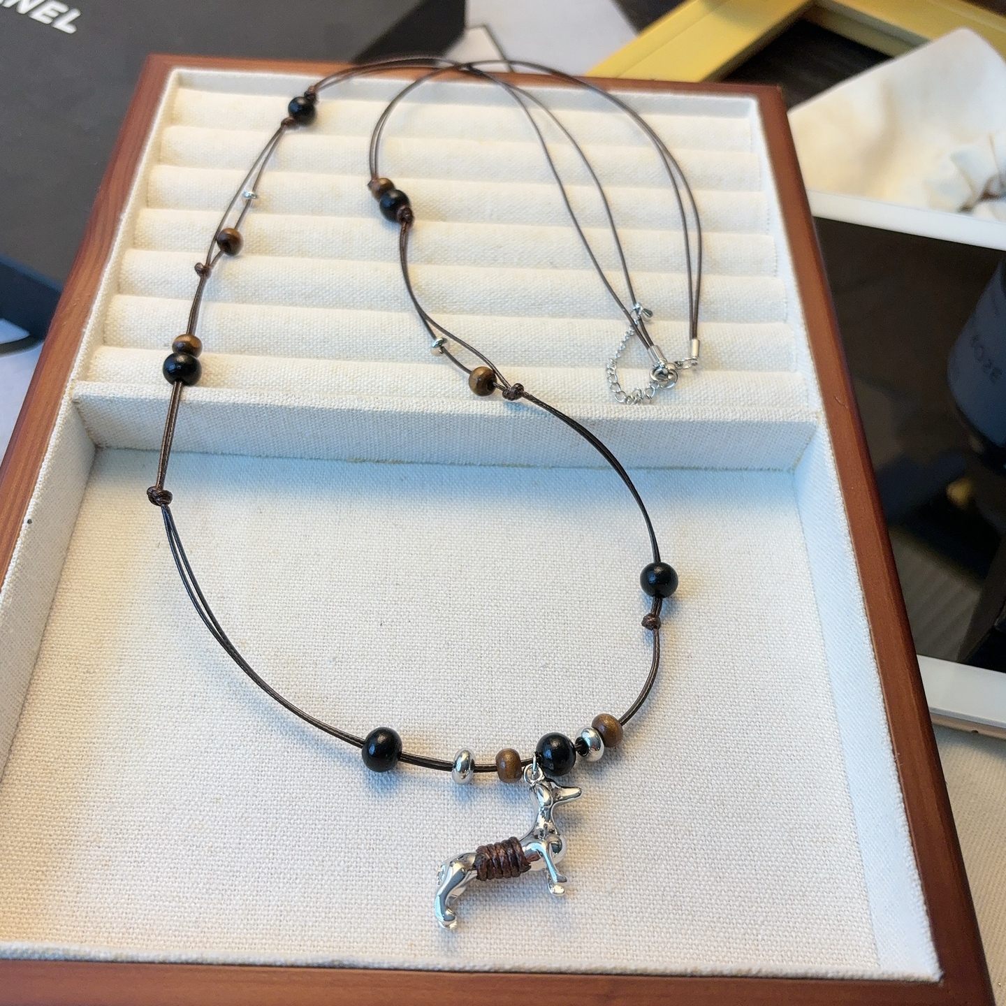 波西米亚风小狗吊坠项链女黑色编织绳小众设计高级感中式毛衣链