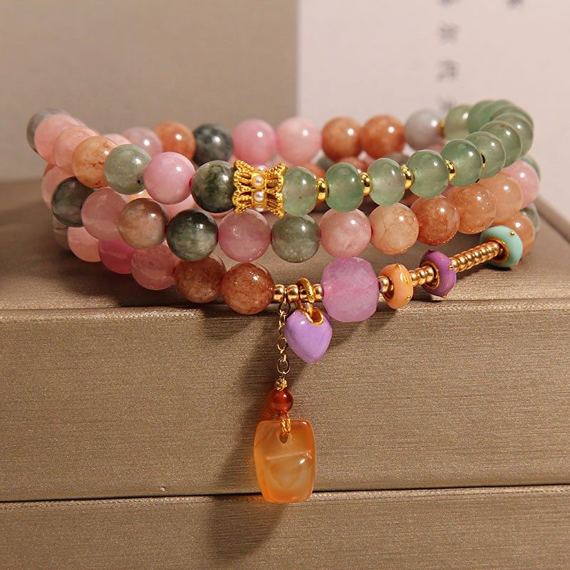 新中式玉石水晶多层手链女新款叠戴手串轻奢小众精致闺蜜串珠手绳