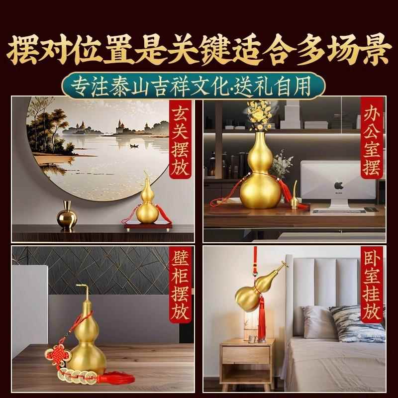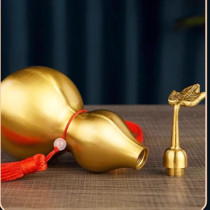 铜葫芦黄铜真品开口盖空心装朱砂五帝钱挂件新中式工艺品客厅摆件