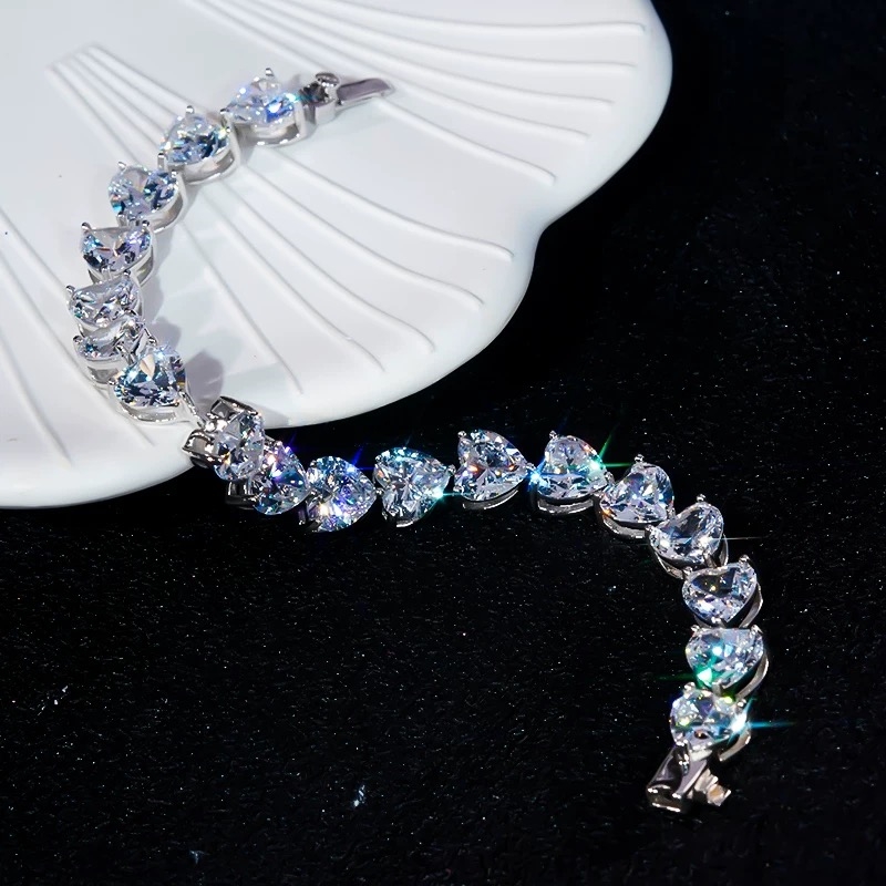 进口莫桑石PT950铂金爱心手链网红桃心款18k金异形满钻手链女奢华