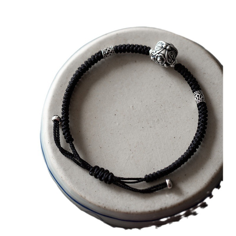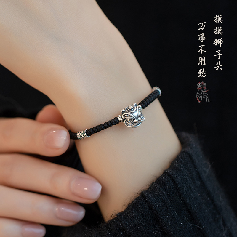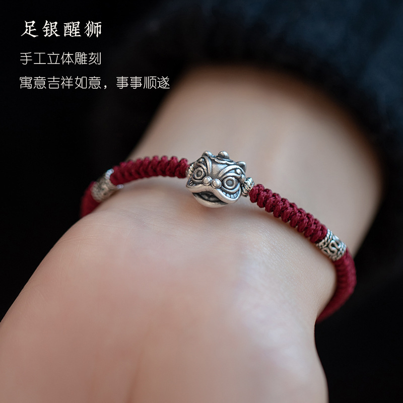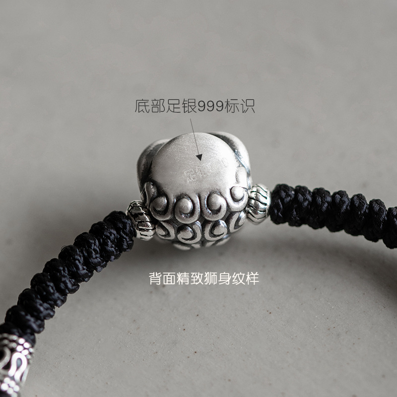 S999纯银醒狮纯银手链男款编织手绳男生男士七夕情人节礼物送