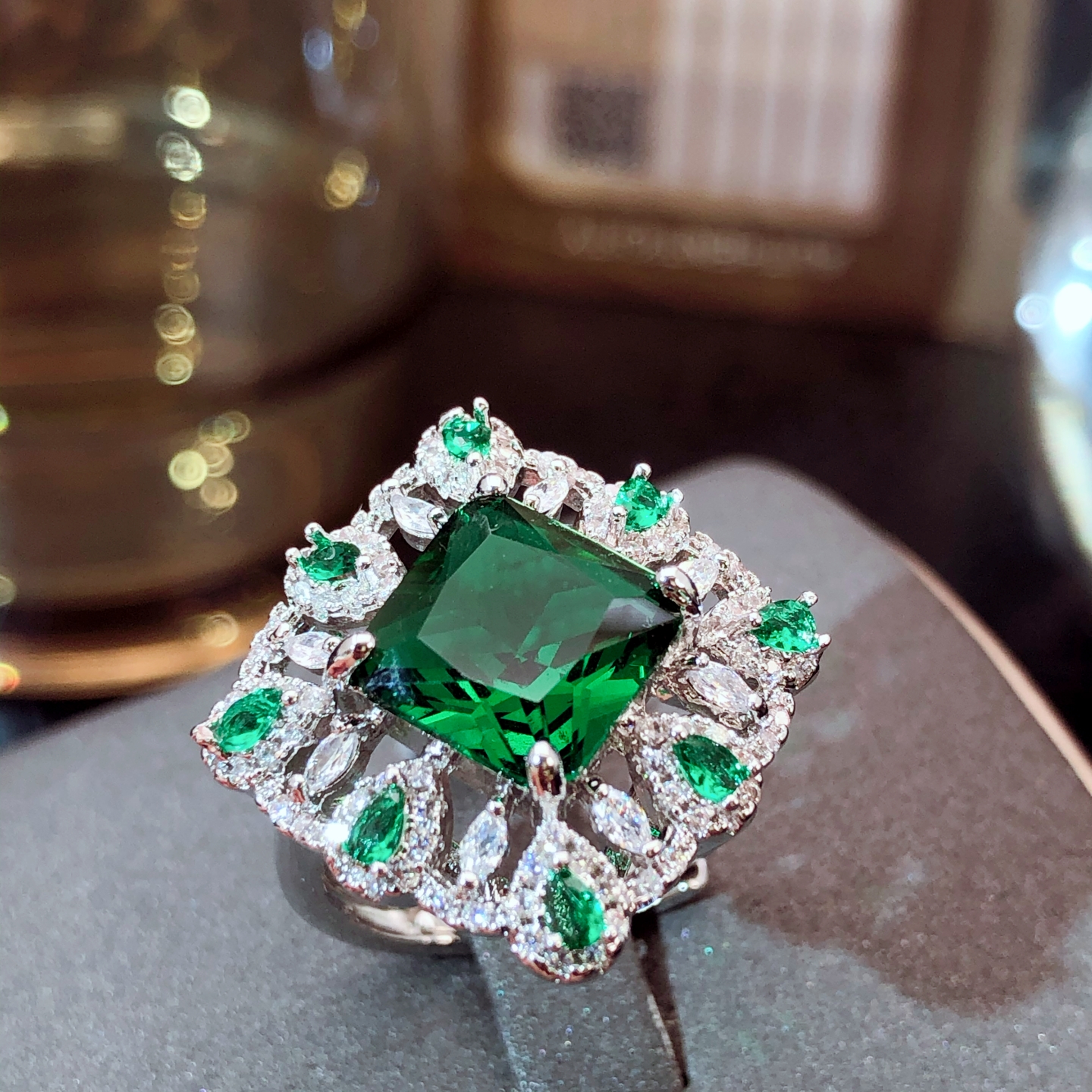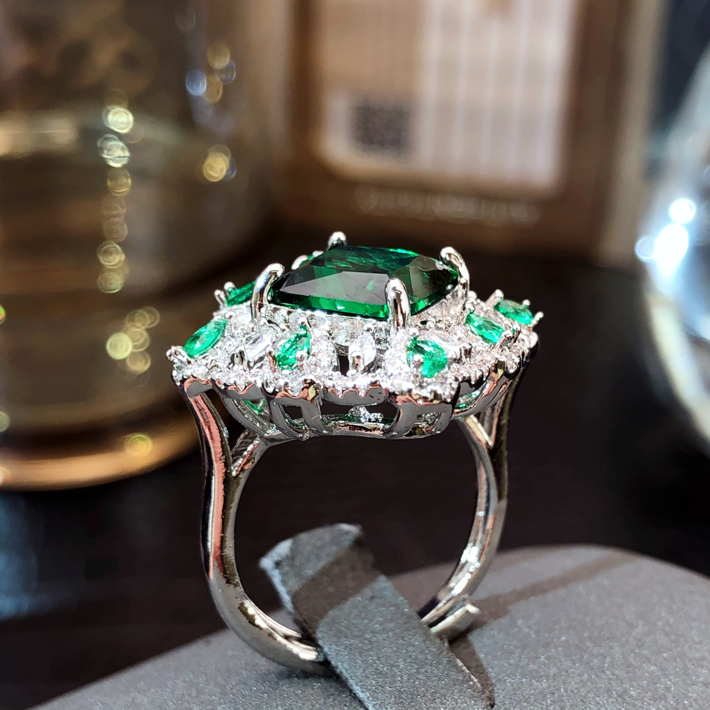 奢华深绿色开口戒指女ins潮冷淡风个性食指戒小众设计可调节指环