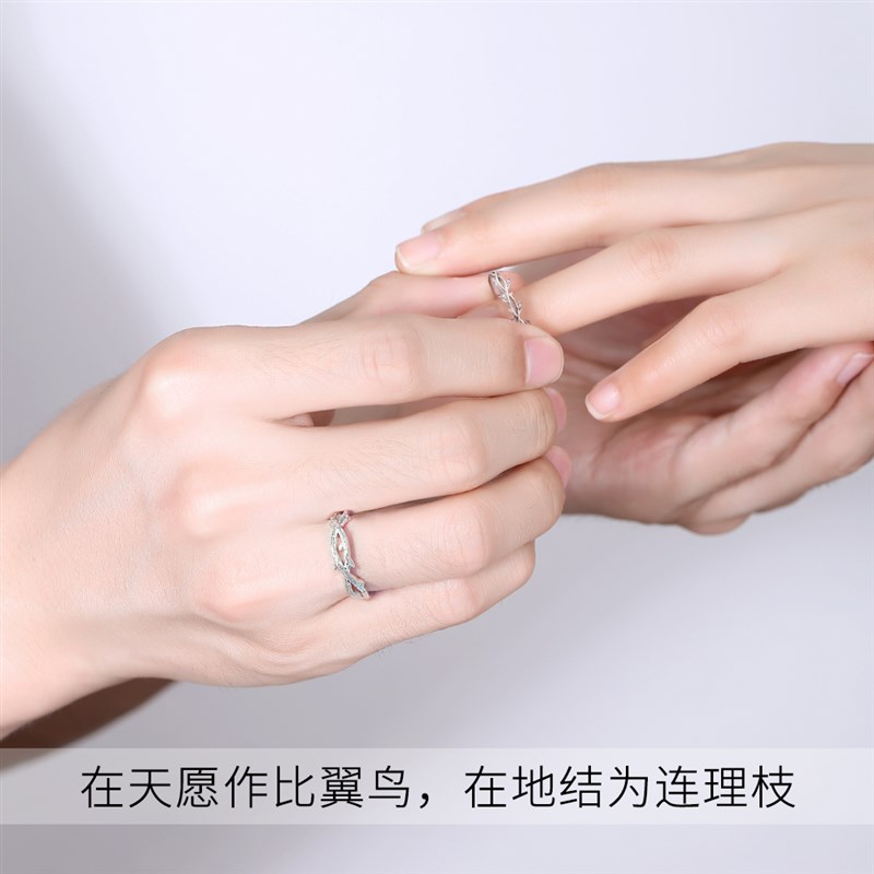 连理枝情侣款戒指纯银一对戒女男轻奢小众设计高级感刻字生日礼物
