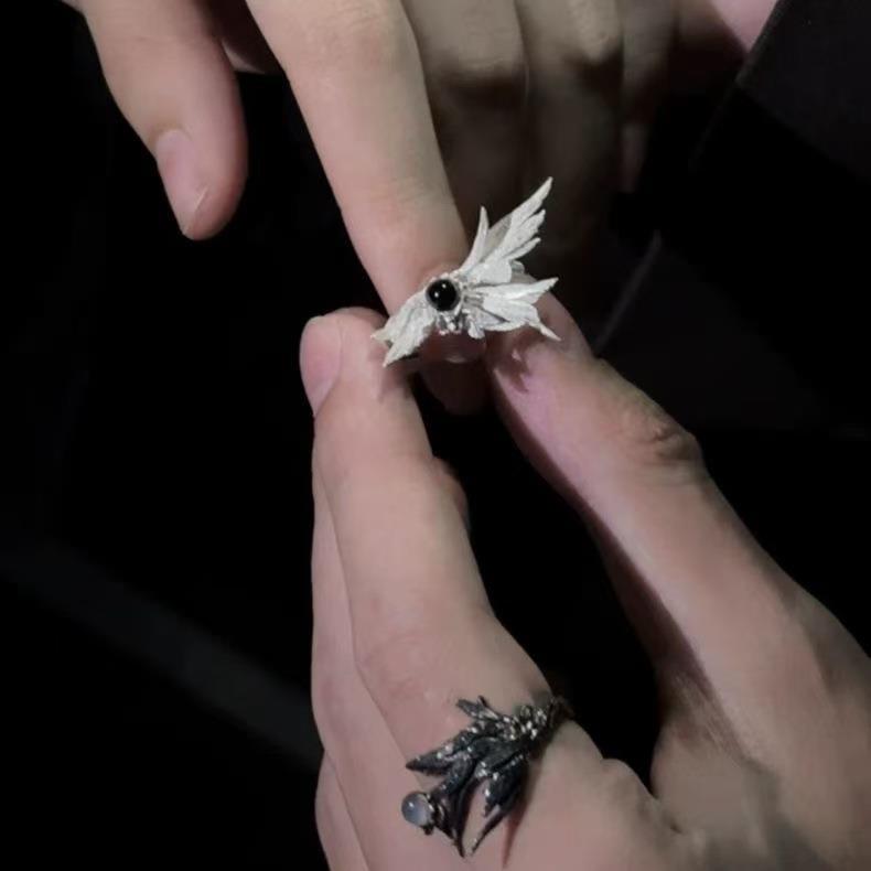 欧美设计感乌鸦戒指男女款冷淡风鸟类独特小众高级开口可调节指环