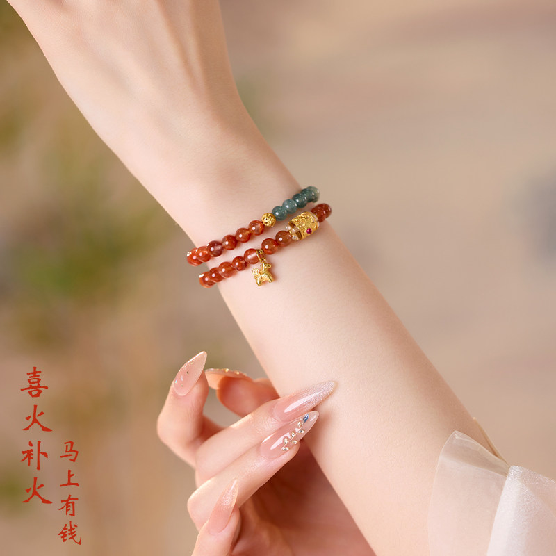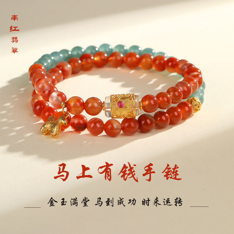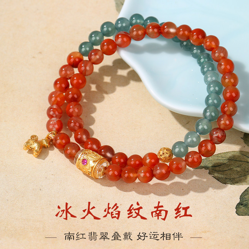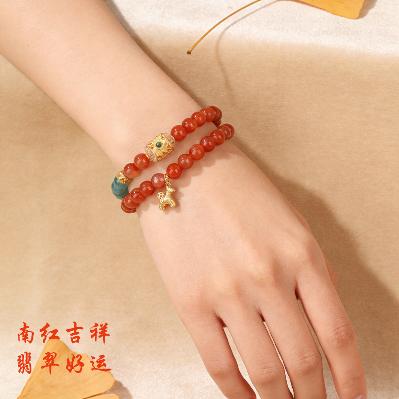 马年本命手链冰飘南红玛瑙天然保山红色手串翡翠多圈女叠戴