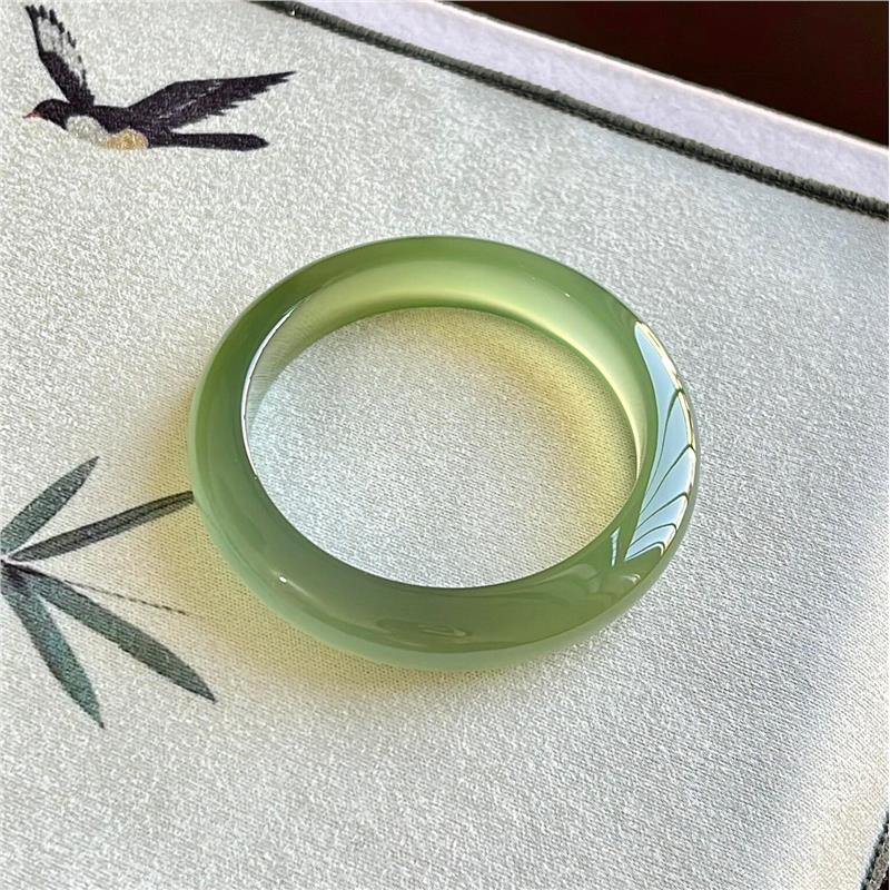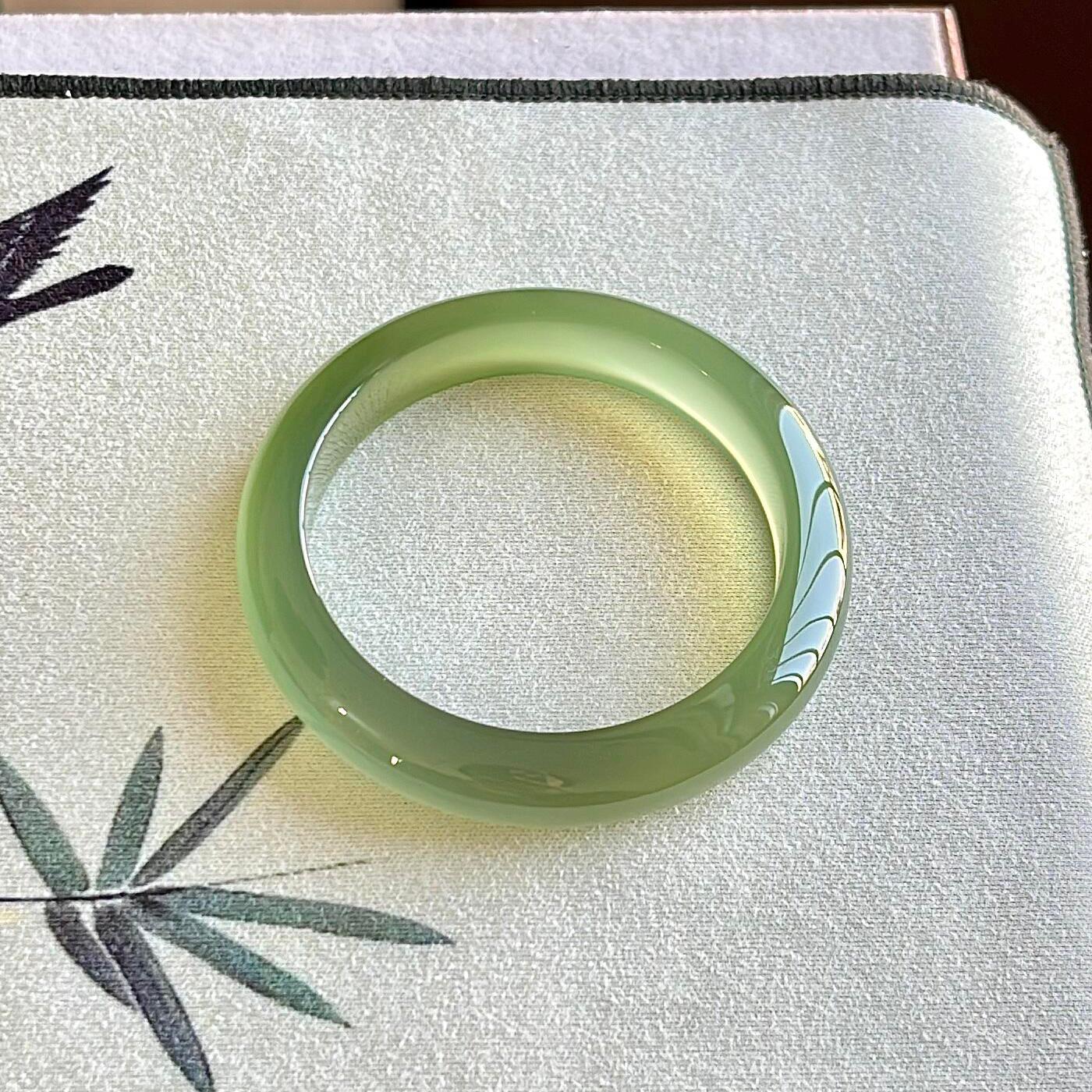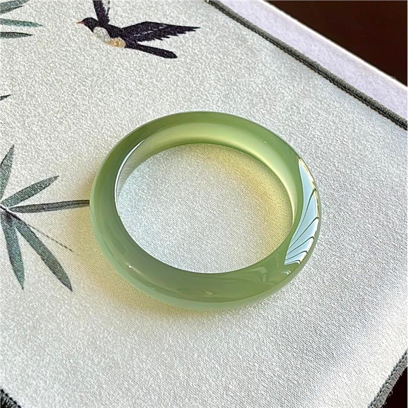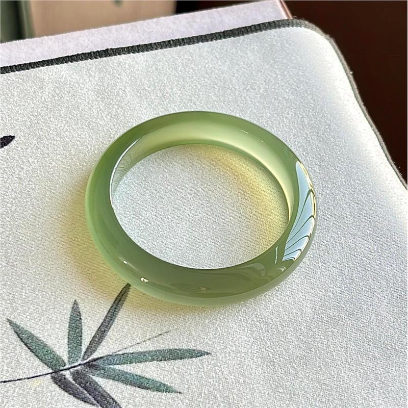天然玛瑙手镯梅子青女款碧玉冰种马料玉髓高冰透玉镯绿色翡翠平替
