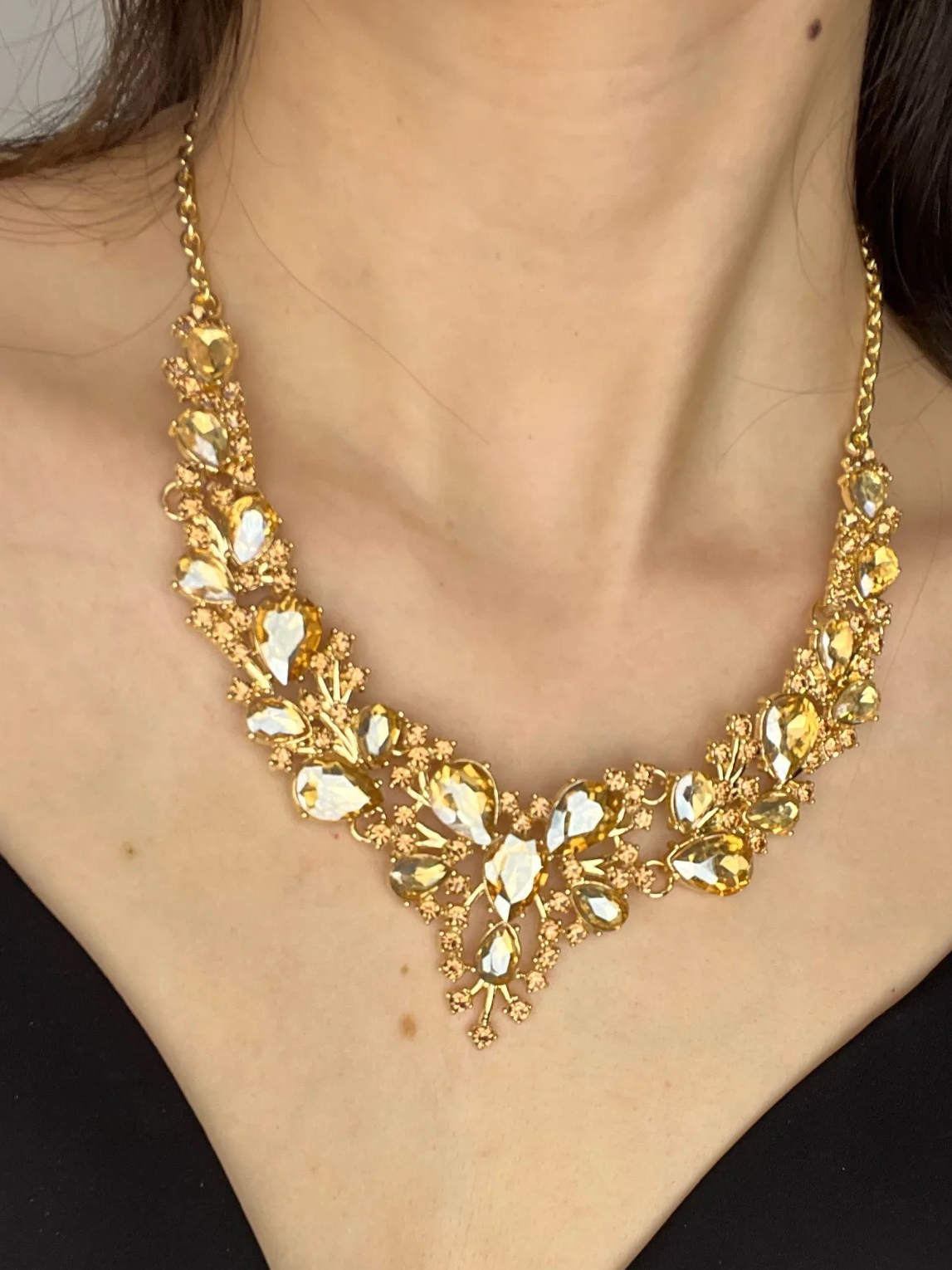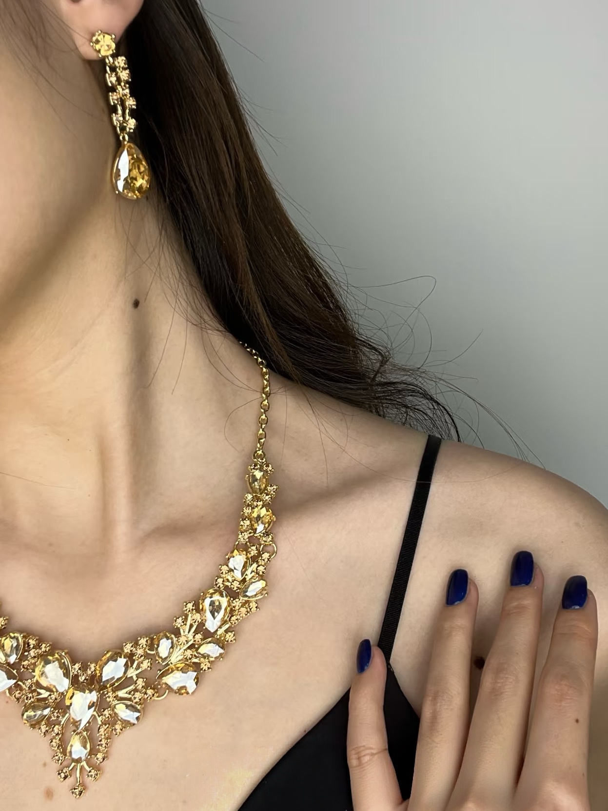 千金感香槟色满钻爆闪流苏项链女款首饰项链耳钉两件套晚礼服配饰