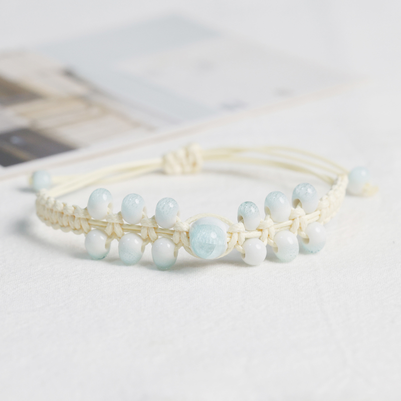 景德镇陶瓷串珠手链女小清新冰裂釉编织手绳古风气质百搭显白手串
