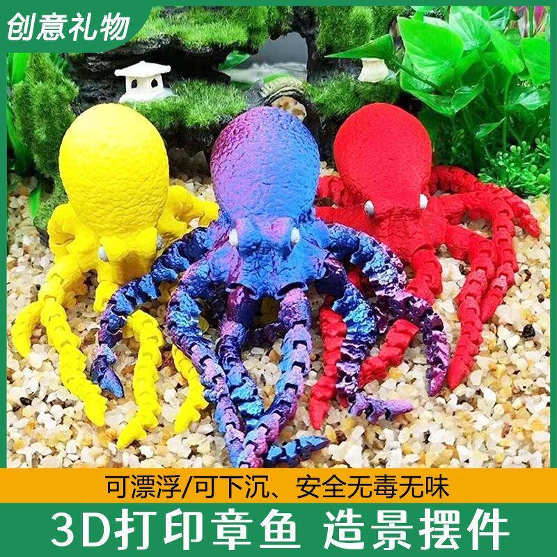 3D打印仿真章鱼乌贼八爪鱼模型关节可动儿童玩具居家摆件鱼缸造景