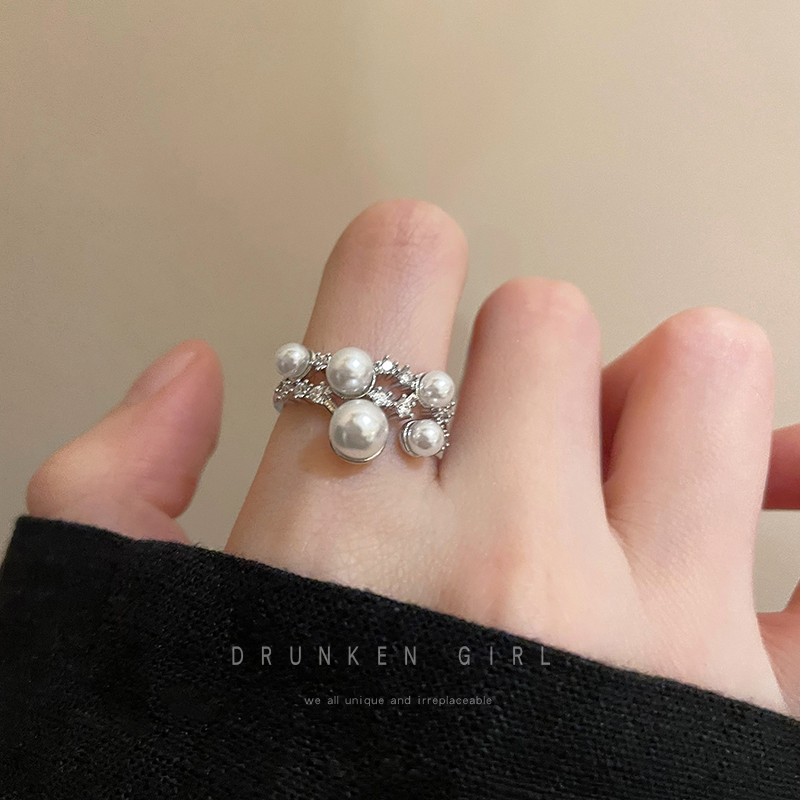 满天星锆石珍珠戒指女轻奢高级感小众独特食指戒2025新款开口指环