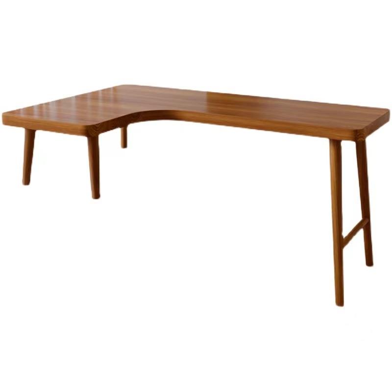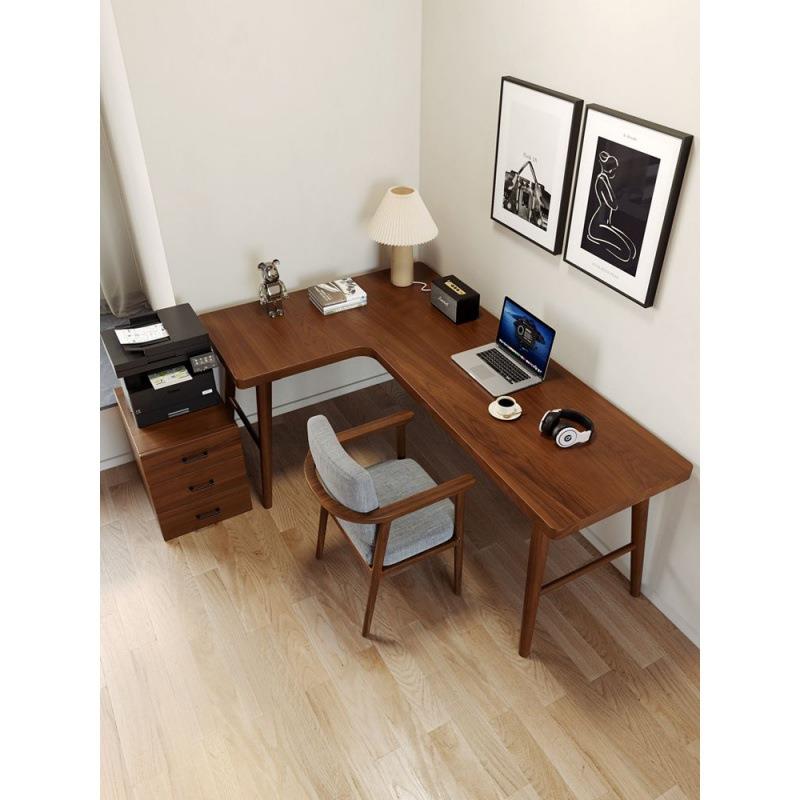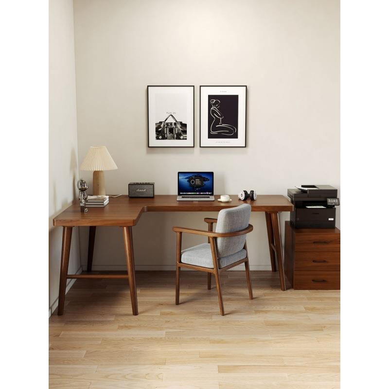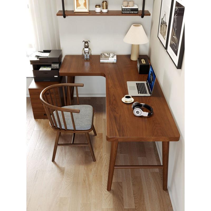严选飘窗转角实木书桌家用高低脚创意阳台桌L型电脑桌靠窗学习桌