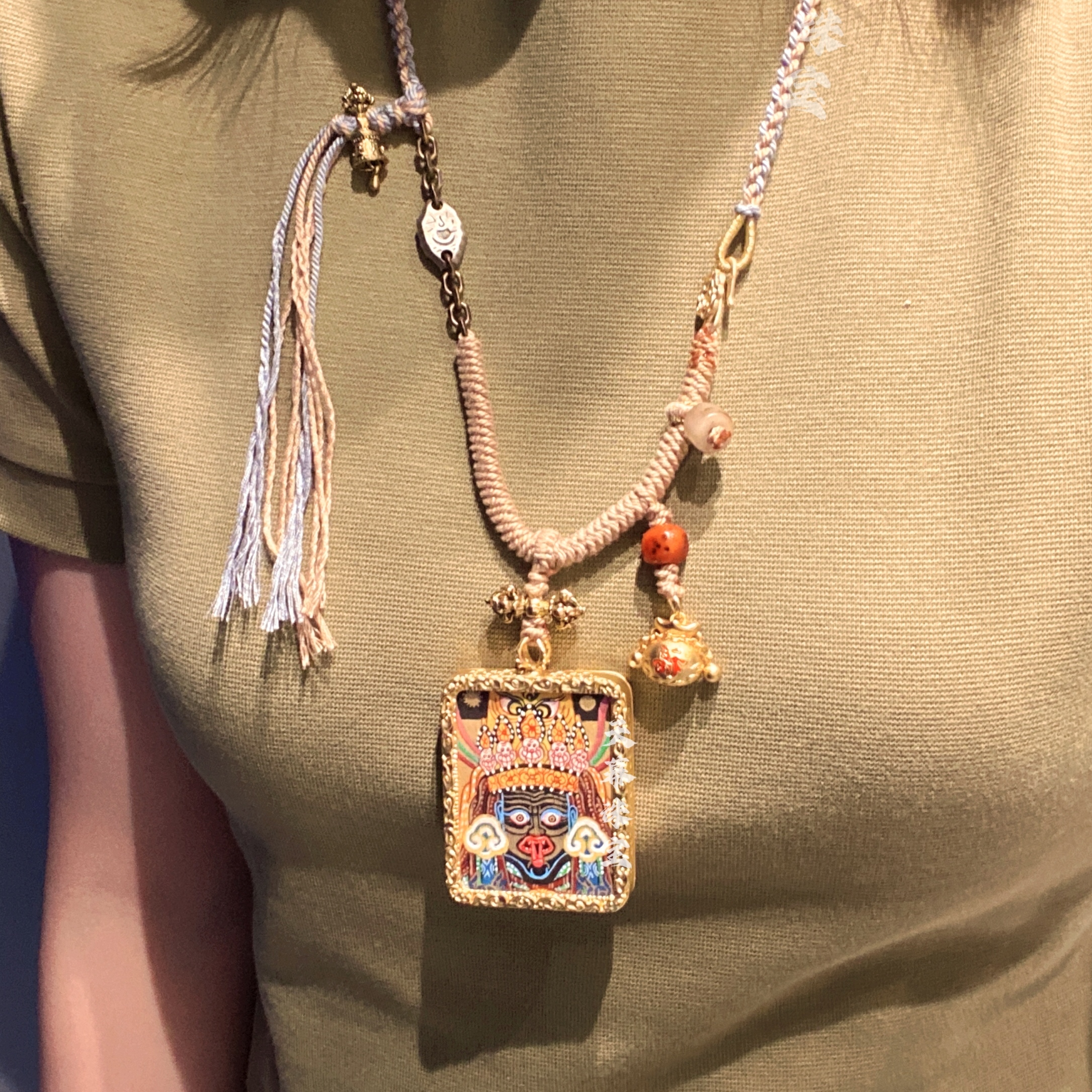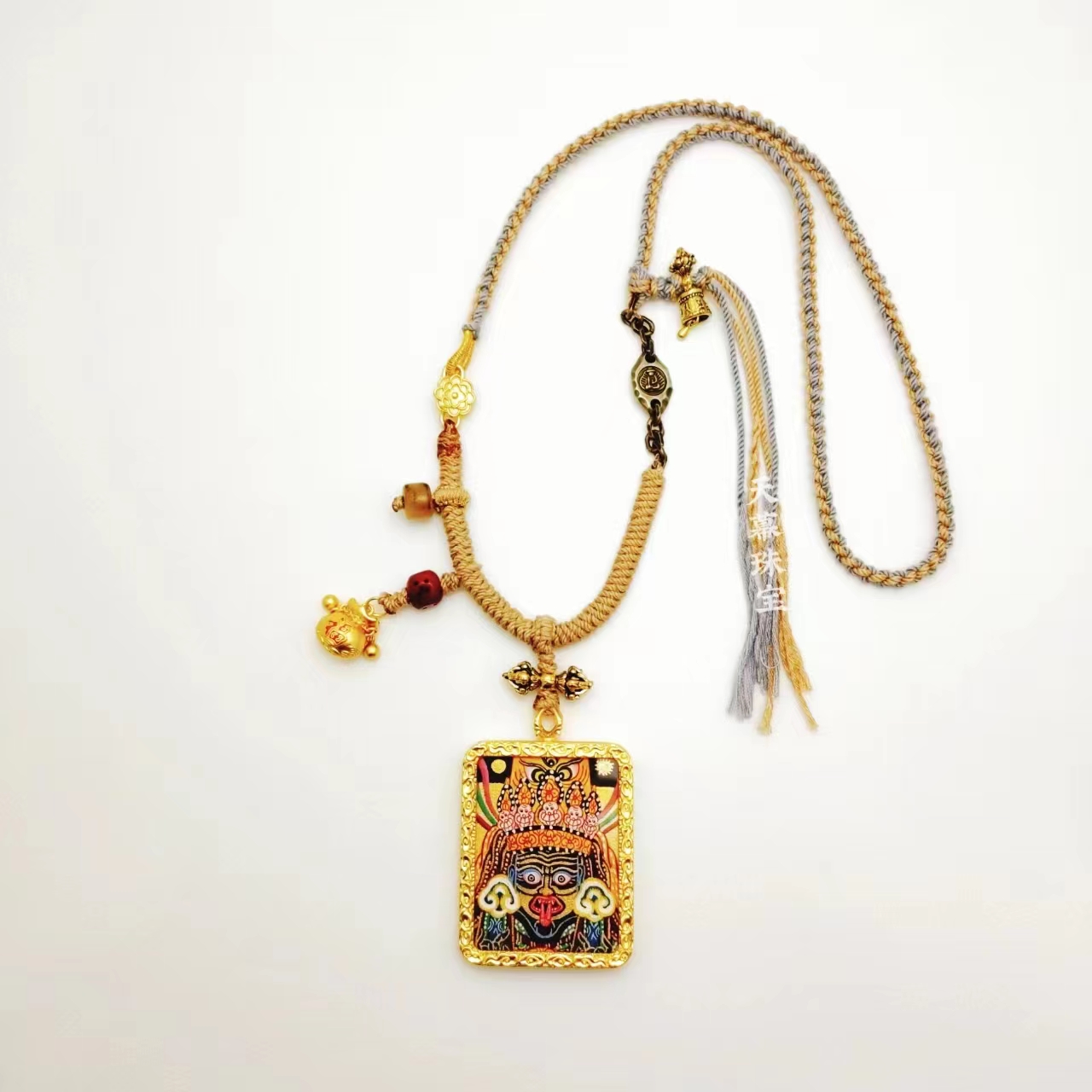 热贡矿物纯手绘日月扎基拉姆唐卡方牌原创藏式手工编织项链绳