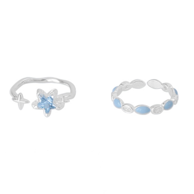 高级感蓝色星星戒指女轻奢法式浪漫气质百搭开口指环小众食指戒潮