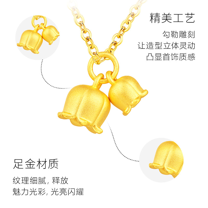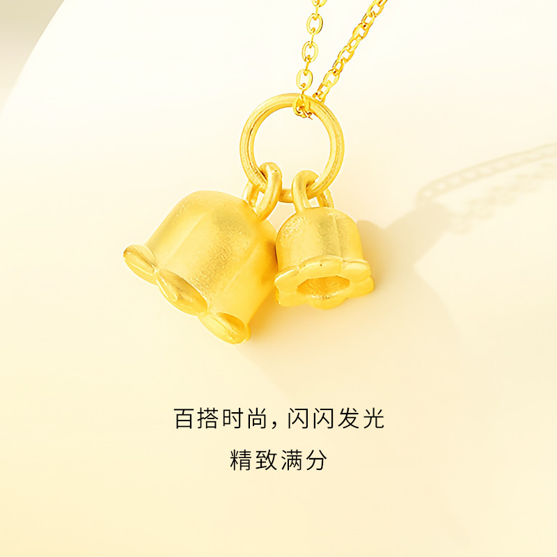 【官方正品】香港大福璀璨黄金铃兰花项链女金包银新款吊坠送礼物