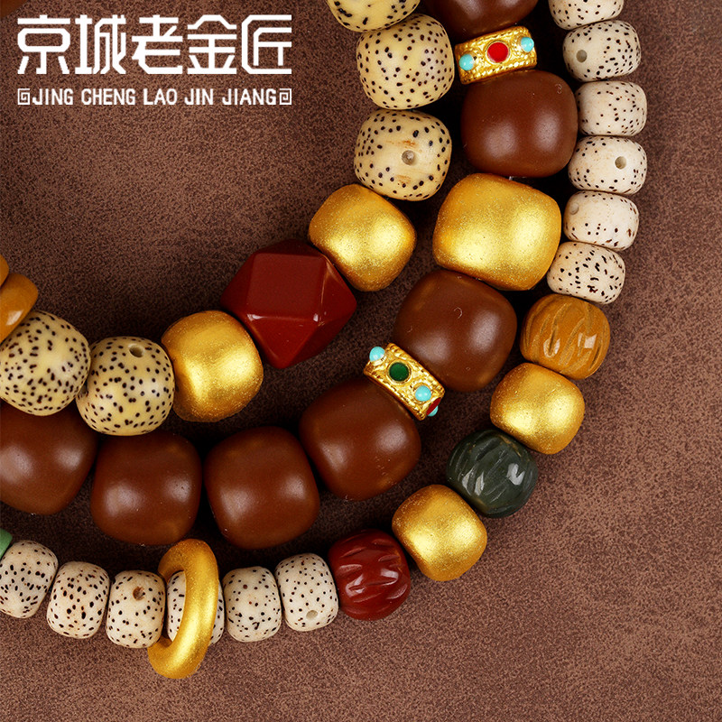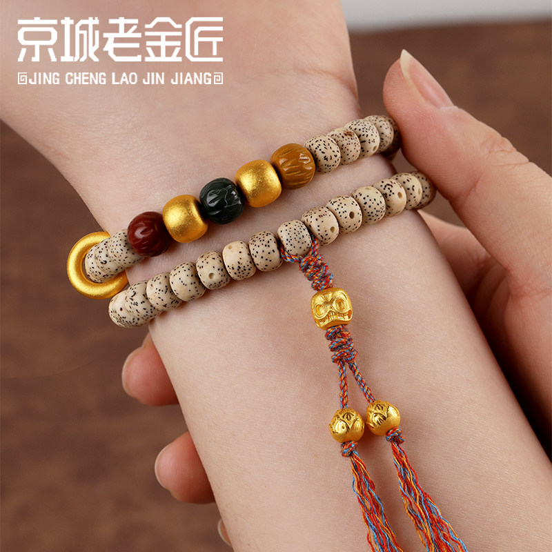 黄金跑环大圈隔片999真金足金3D硬金哑光文玩手串转运珠男女