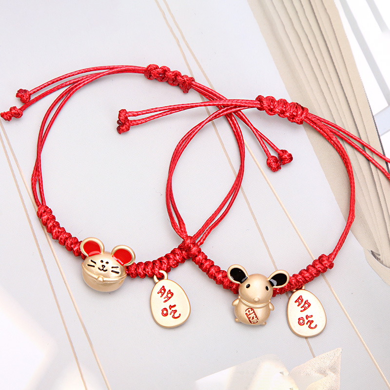 鼠年本命年红绳手链女属鼠生肖老鼠编织新款情侣红色手绳简约手串