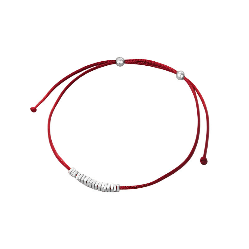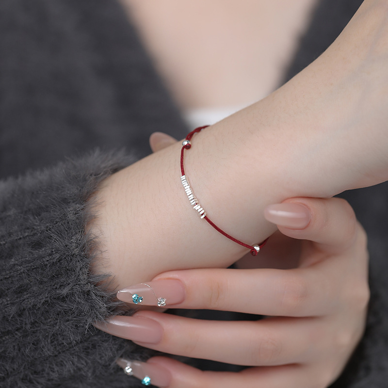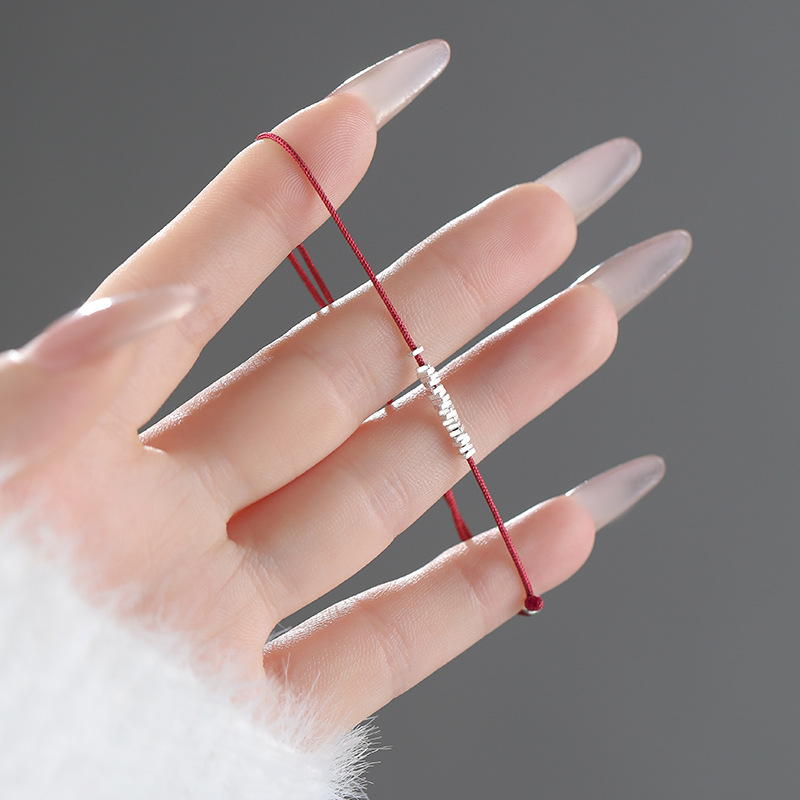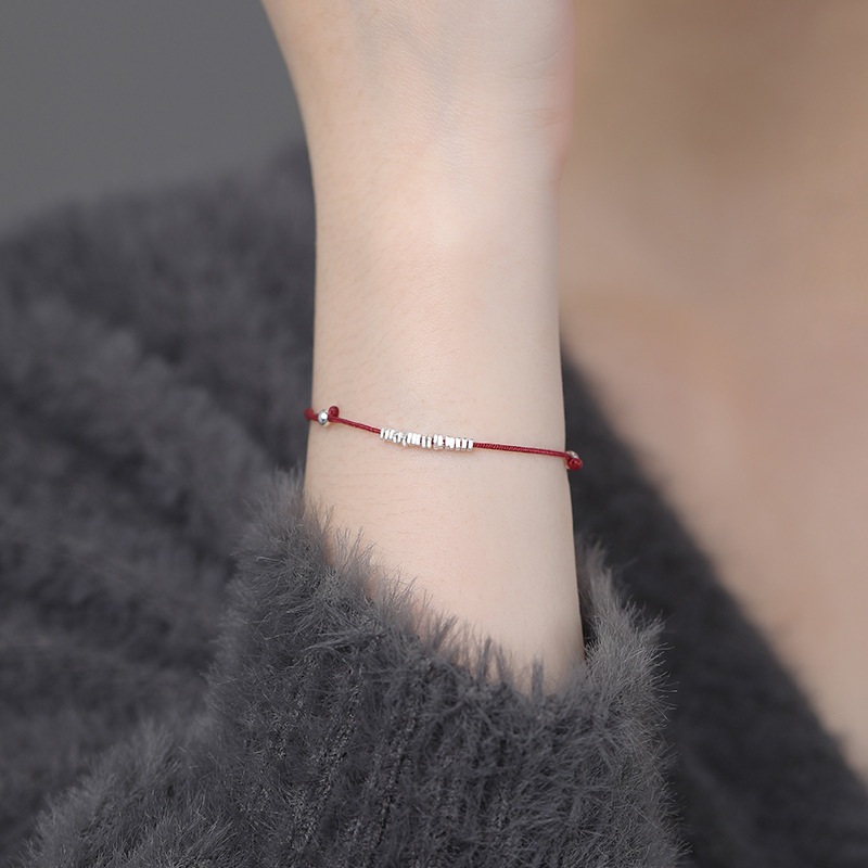 阿宝s999足银简约碎银子手链女新中式本命年百搭红色编织手绳