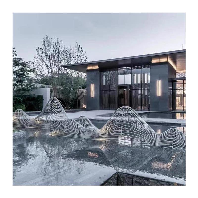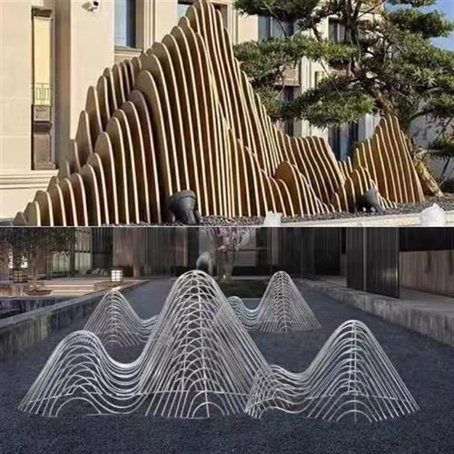 大型不锈钢镂空假山摆件售楼处水景管状切片山形雕塑景观小品定制