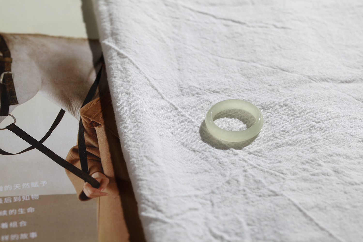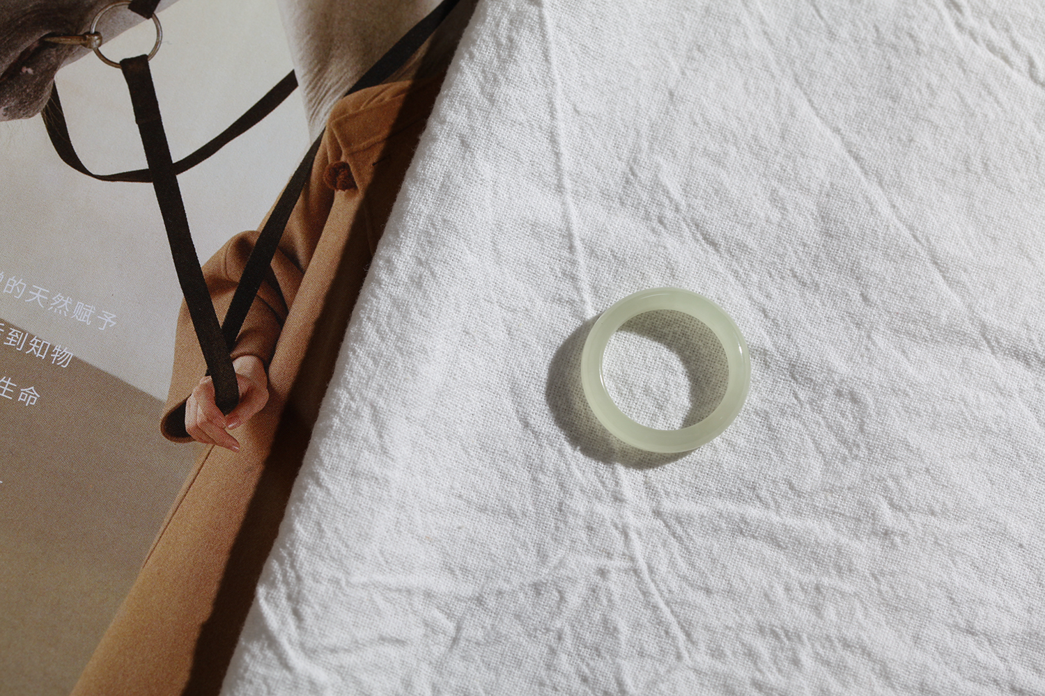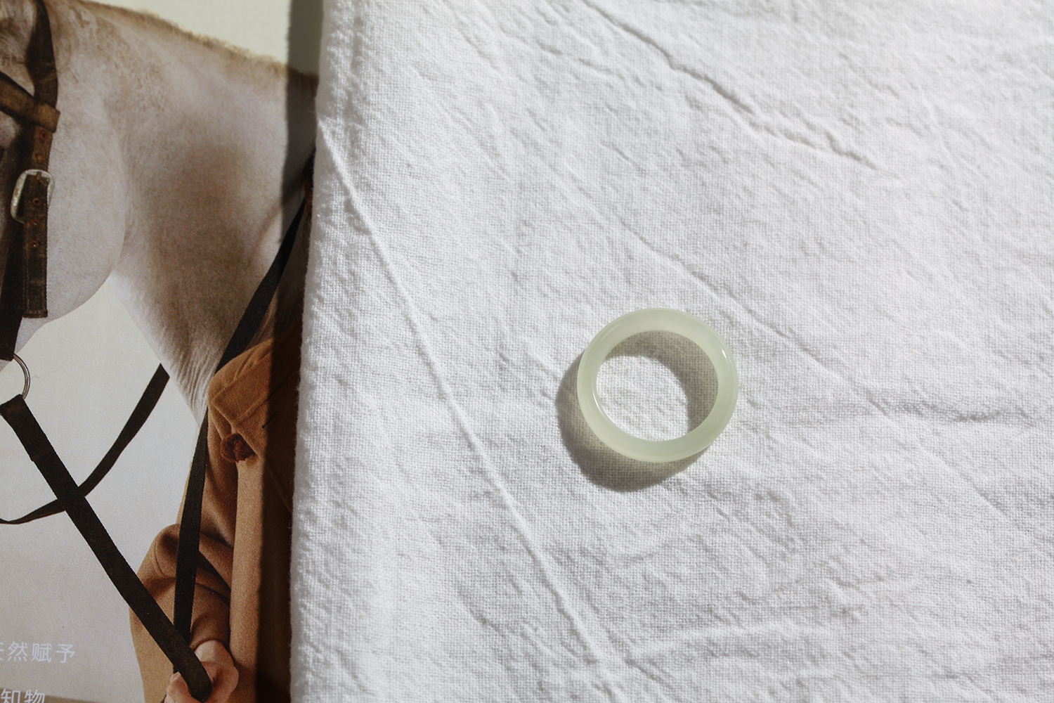 16号戒指 和田玉糖玉浅糖色圆弧素圈指环 6880