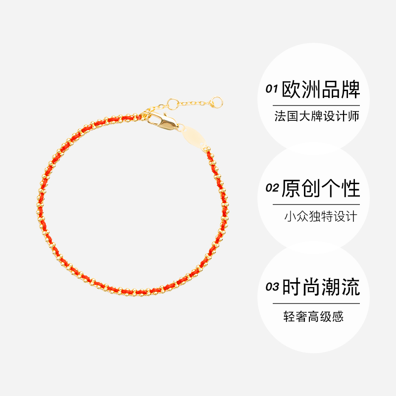 【自营】leqiyuan红绳手链女轻奢高级感精致金珠编织新款转运绳