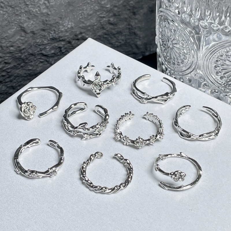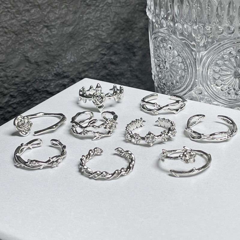 素圈简约荆棘玫瑰花开口戒指女不规则肌理褶皱时尚个性百搭食指环