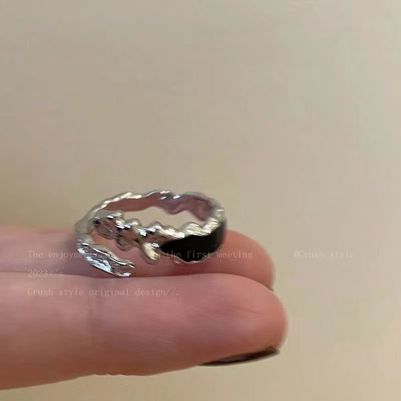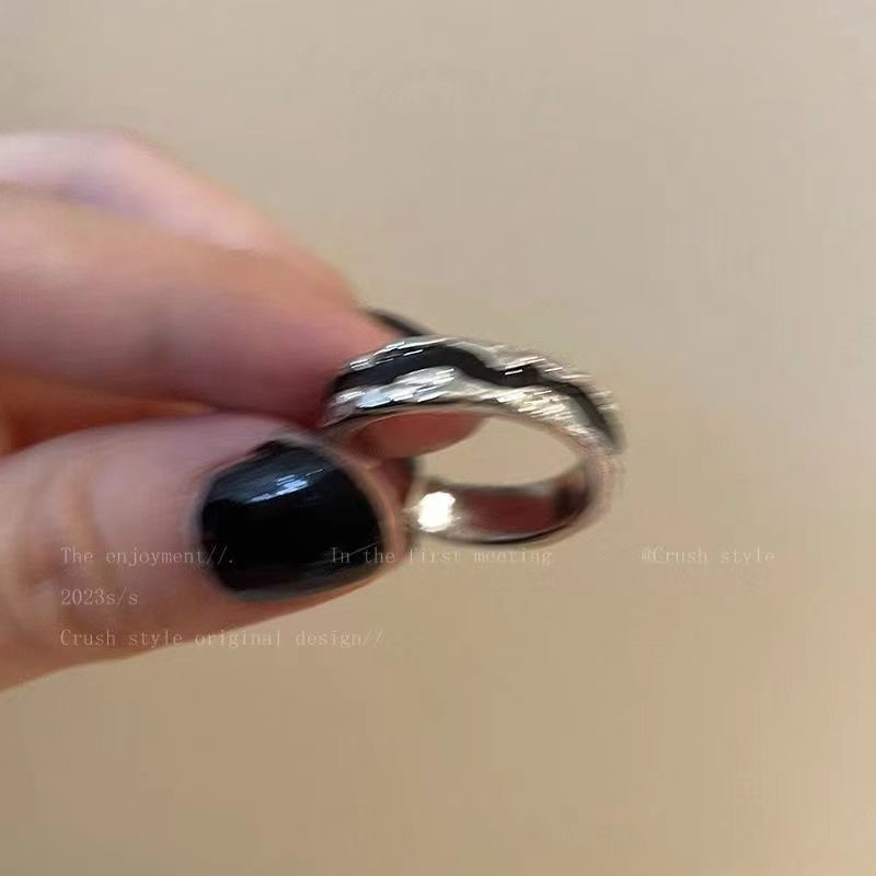 黑色滴釉开口戒指女夏ins小众高级感设计食指戒时尚个性百搭指环