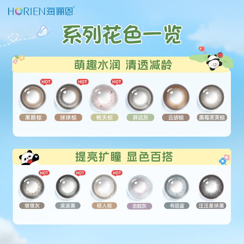 【新客尝鲜】海俪恩美瞳熊猫日抛2片彩色隐形眼镜三明治工艺