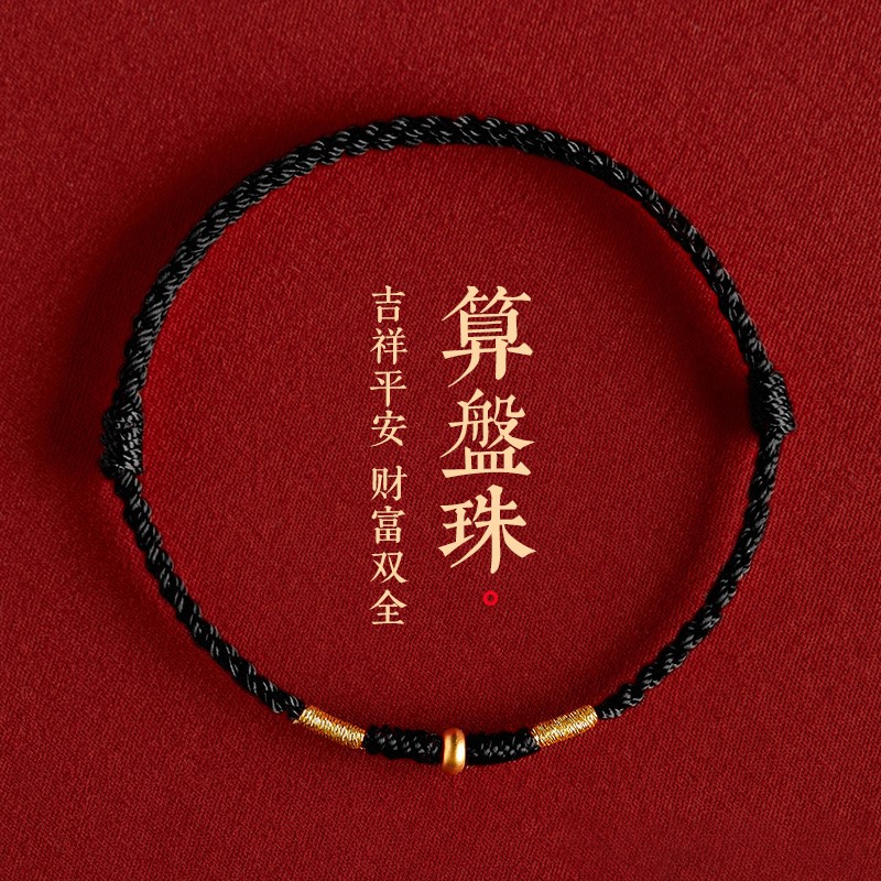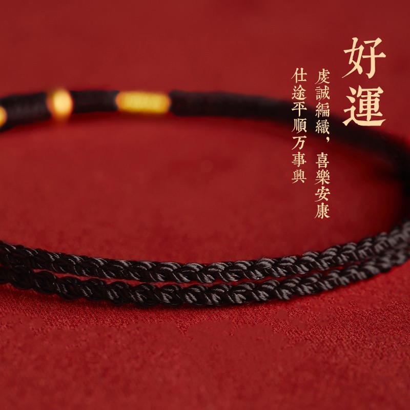 普陀山999黄金黑绳手链男生好运手绳黑色转运珠编织绳女红绳礼物