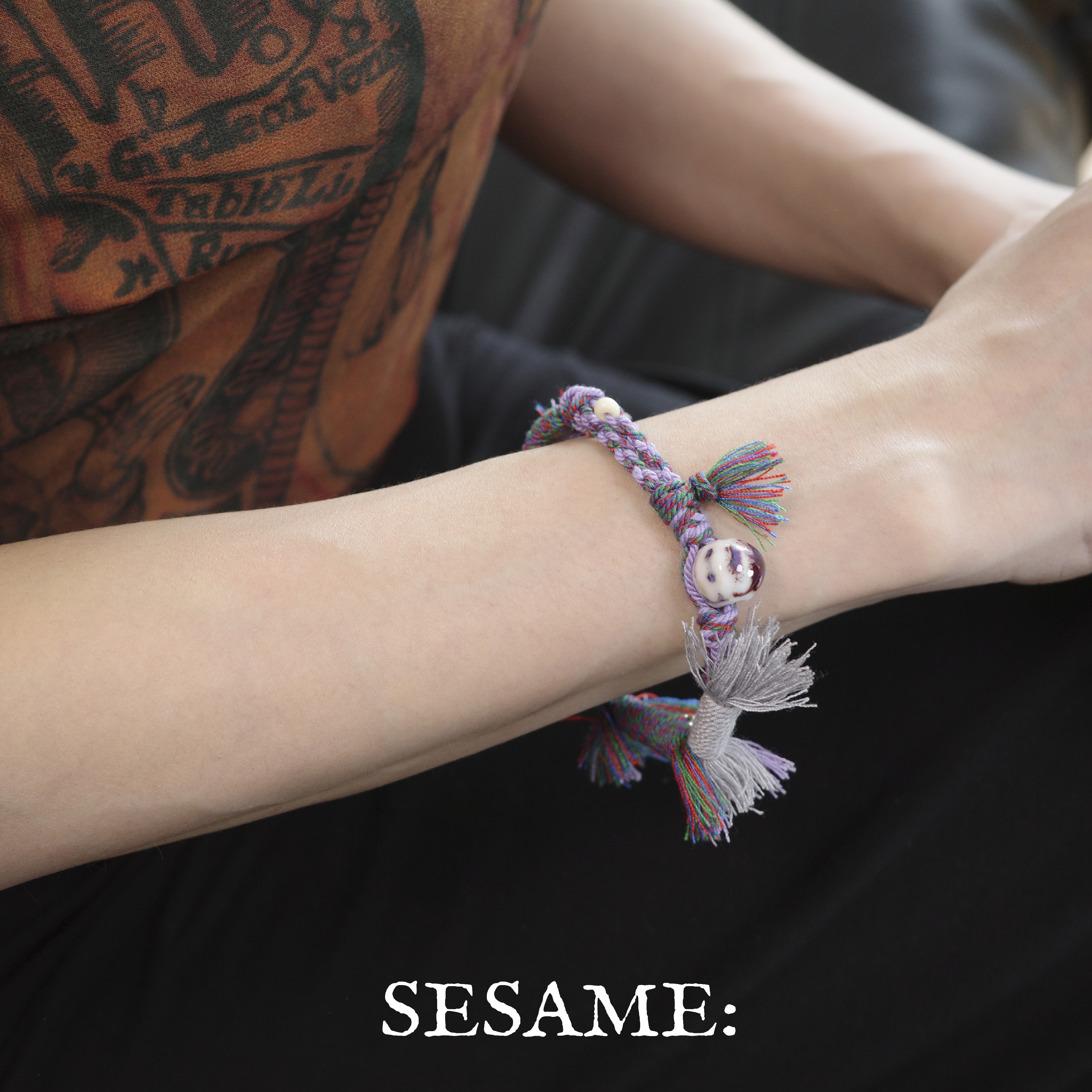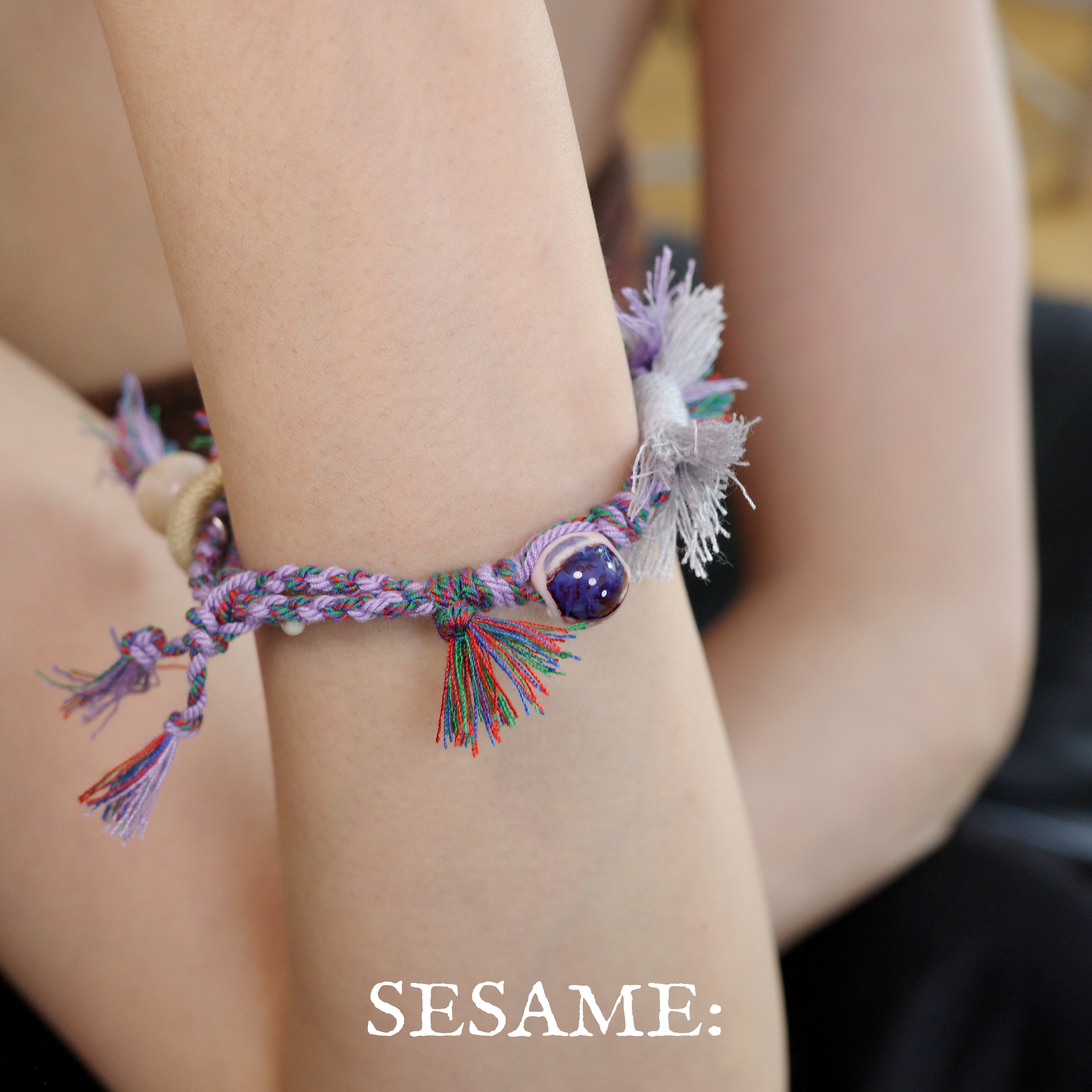 飒米梦幻紫色陶瓷藏式编织民族风手工编织手链手绳
