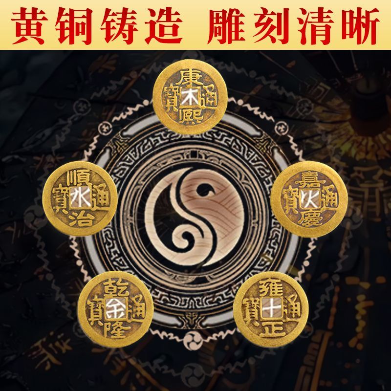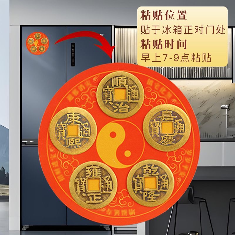 五帝钱冰箱贴冰箱门对灶台入户门八卦黄铜钱压门槛磁吸贴解决大门