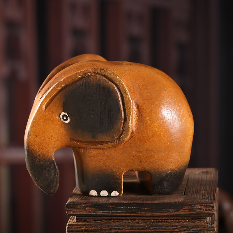 东南亚实木大象小象摆件桌面装饰摆设泰国进口吉祥象木雕手工艺品