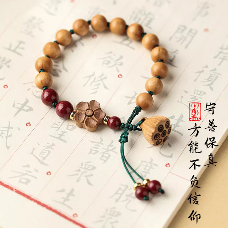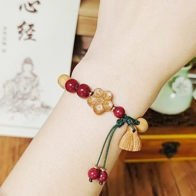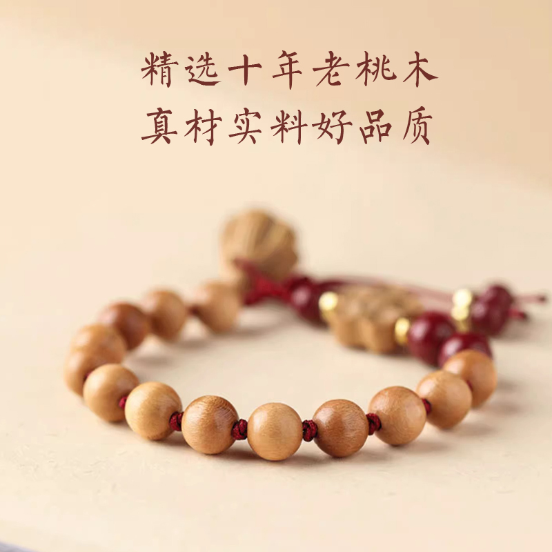 天然老桃木手链女朱砂手串本命年男转运珠编织红绳防宝宝惊吓手链