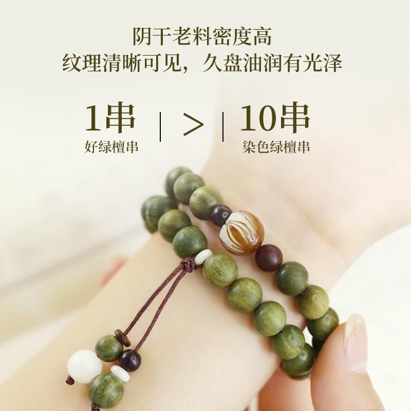 天然老绿檀木手串男士女生款多圈108颗手链念珠木质文玩佛珠盘玩
