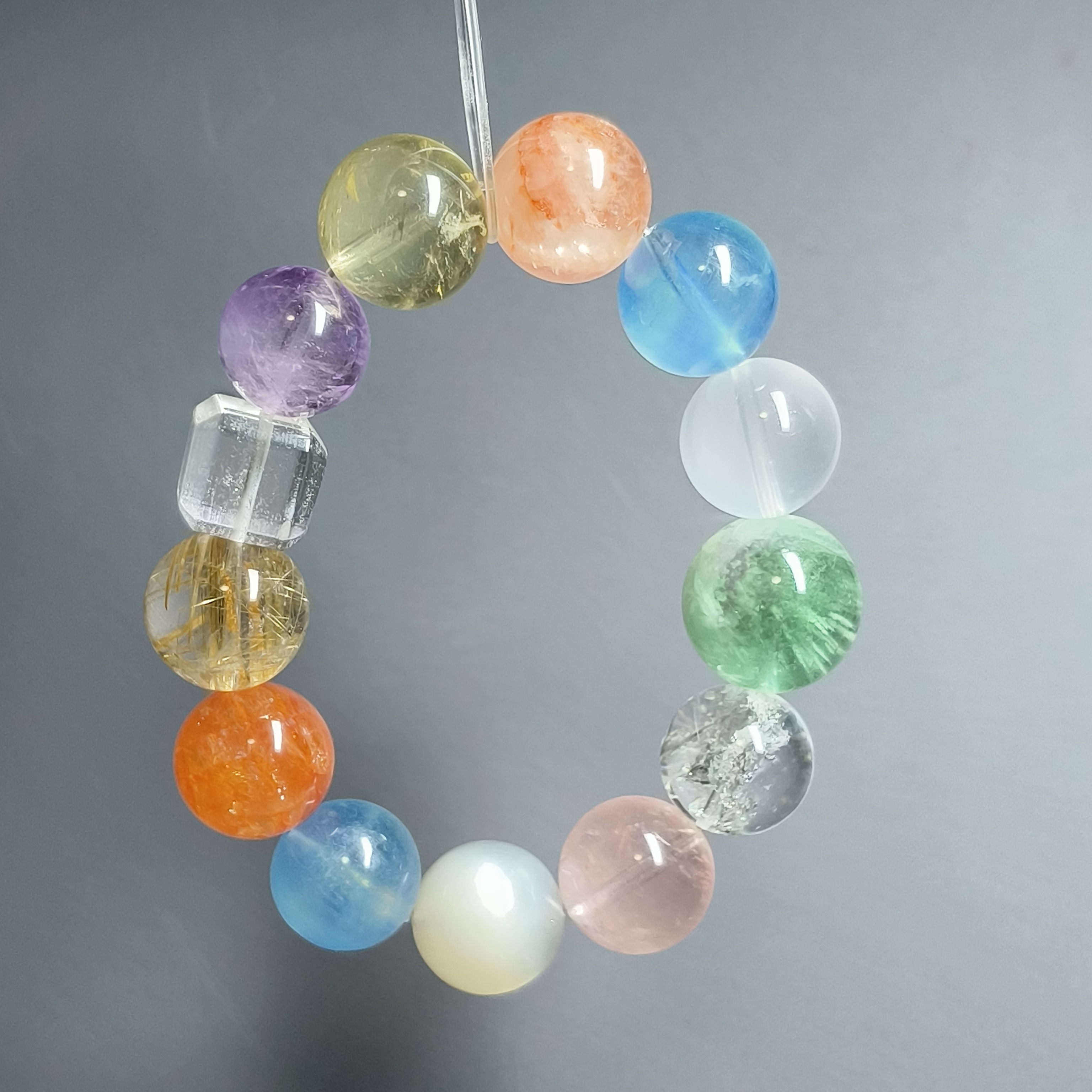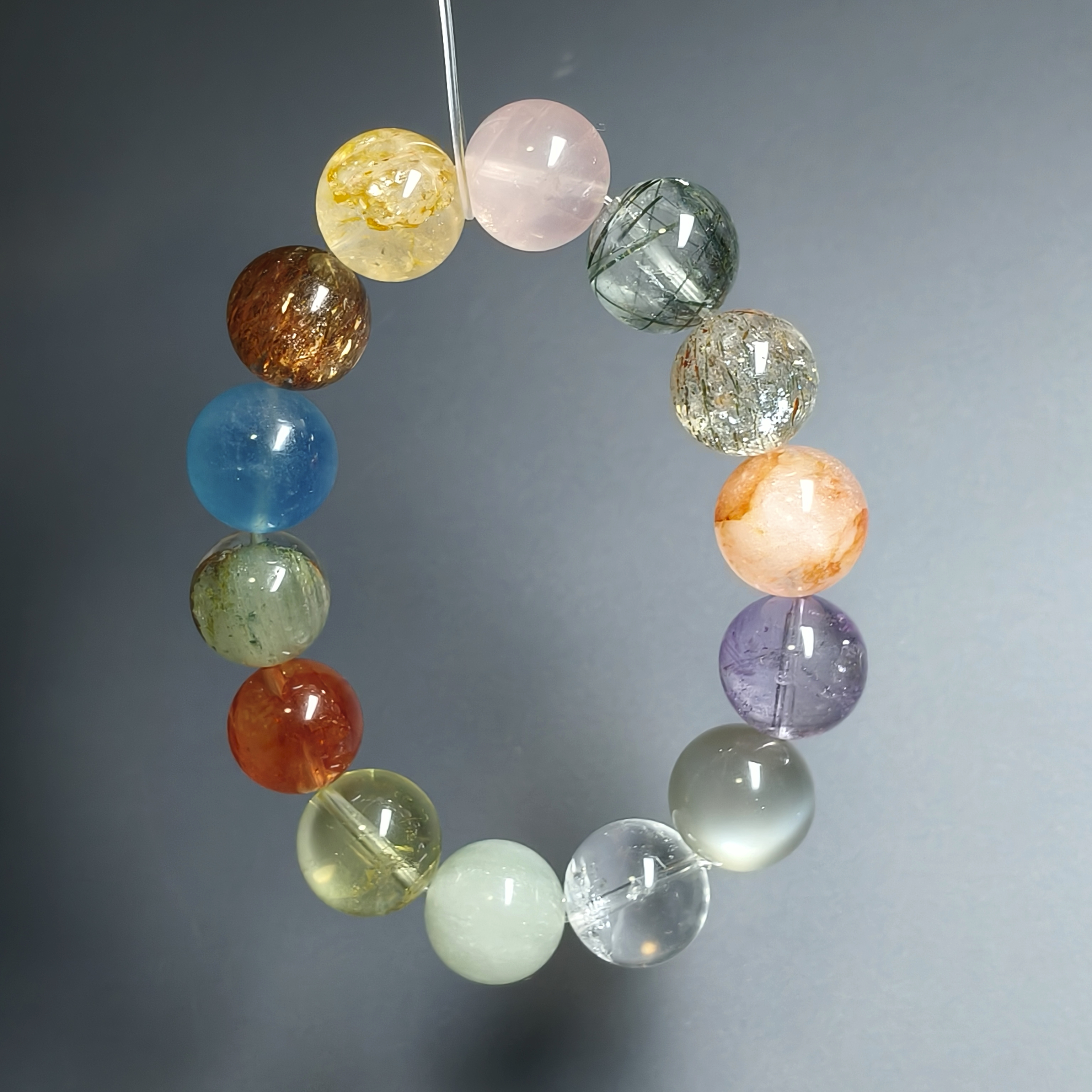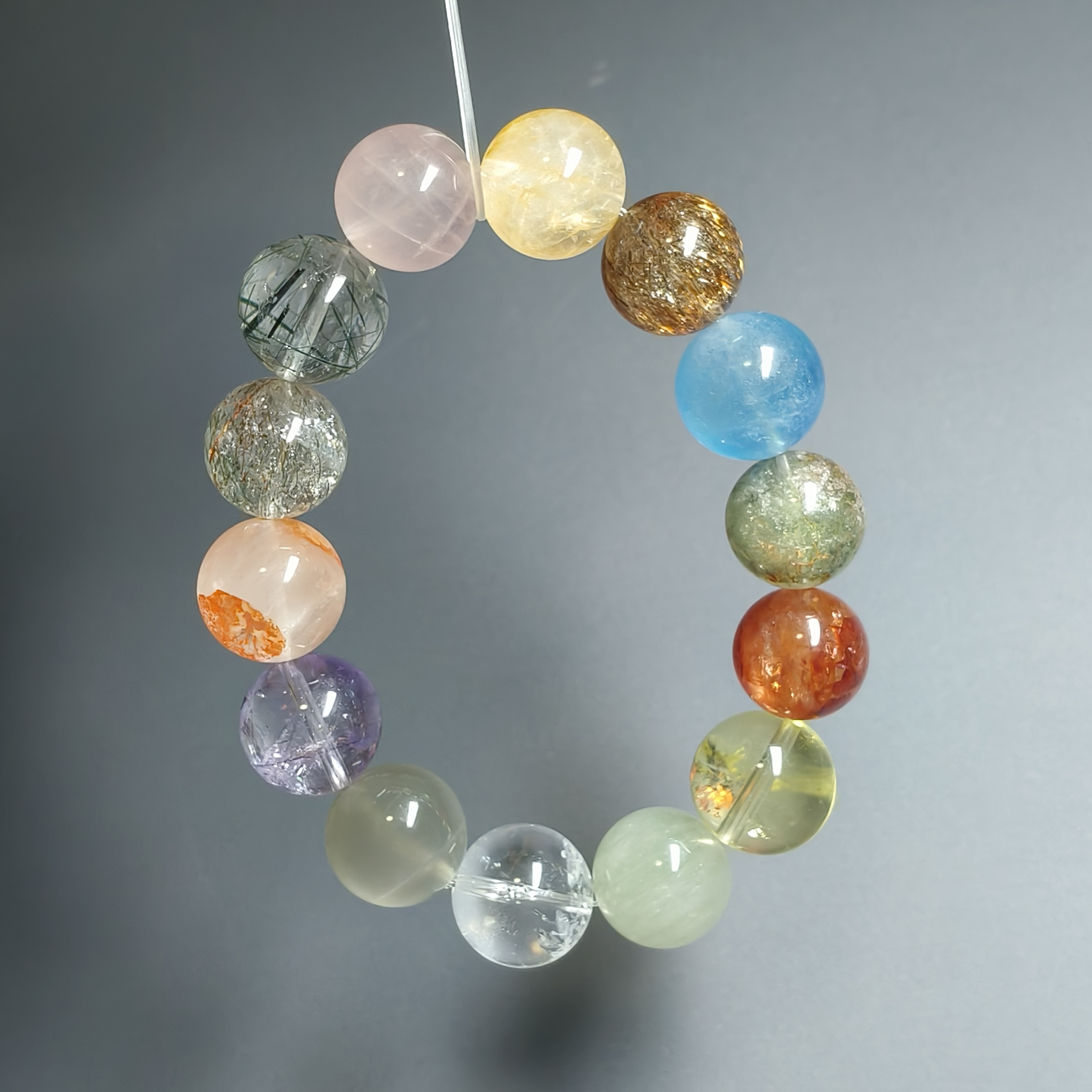 天然大颗粒招财天然水晶手串多宝手链原创设计款高级绿幽灵海蓝宝