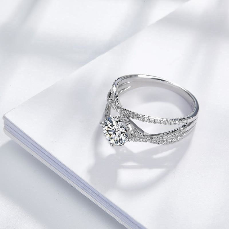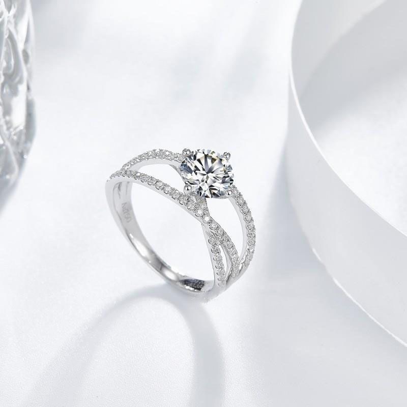 进口D色莫桑石钻戒三生三世女戒指婚戒一克拉S925银镀铂金情侣戒