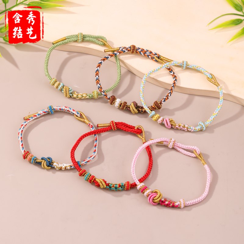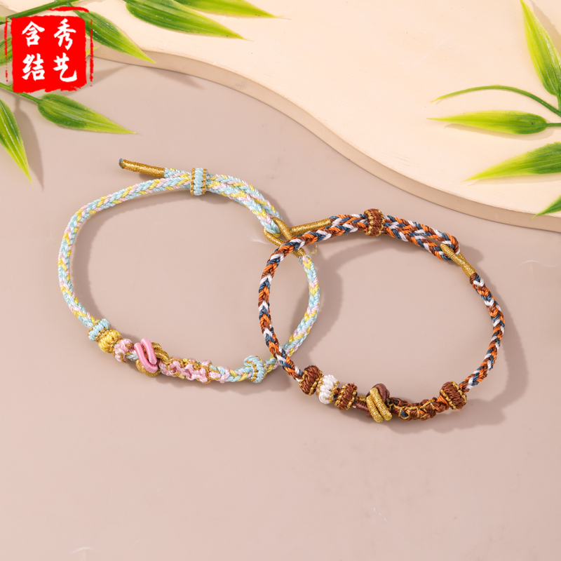桃花酒窝结编织手绳手工编织可串珠调节精美叠彩手链朋友时尚礼品