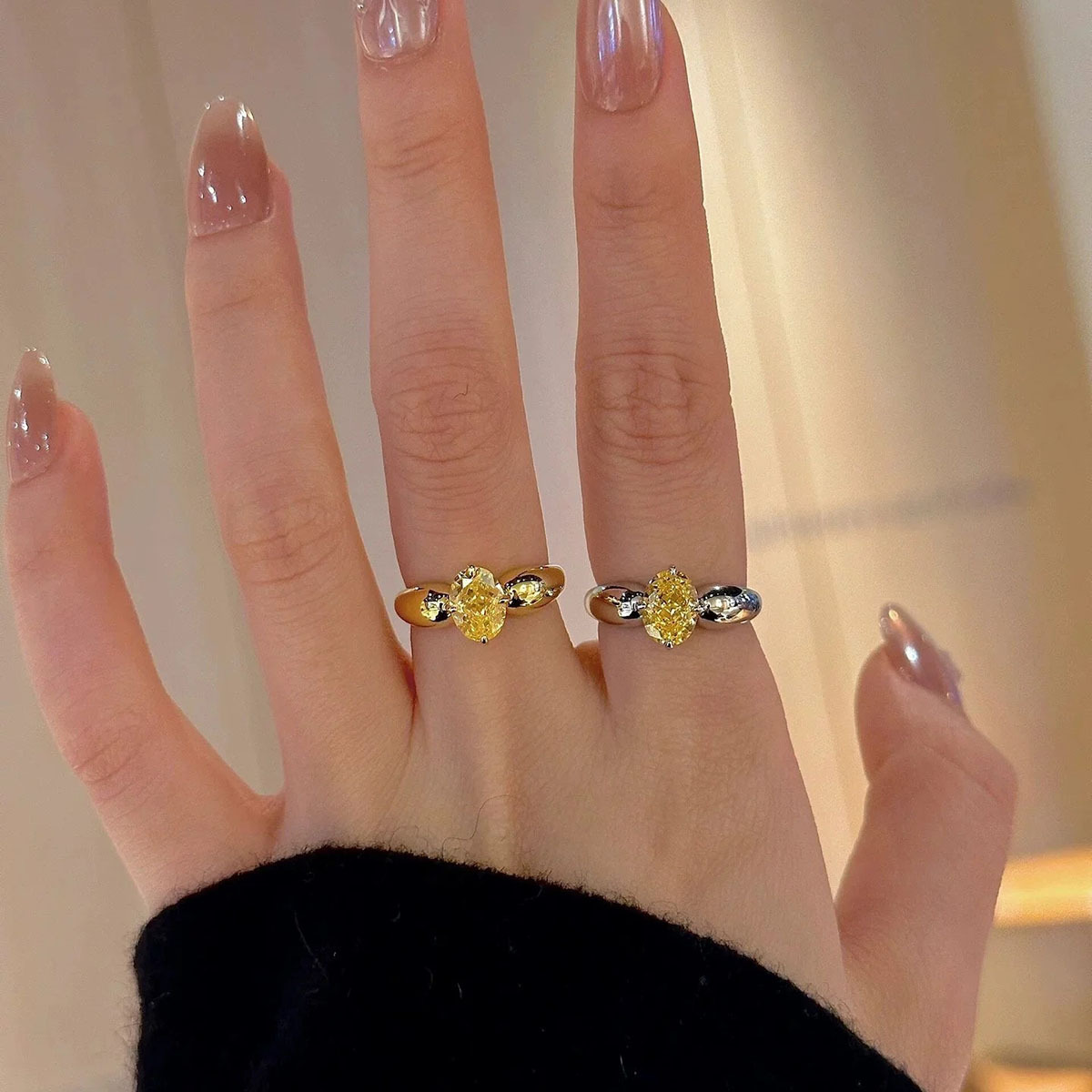 日系CherryKoko中古Vintage黄钻招财小众设计时尚轻奢蛋形镶嵌戒