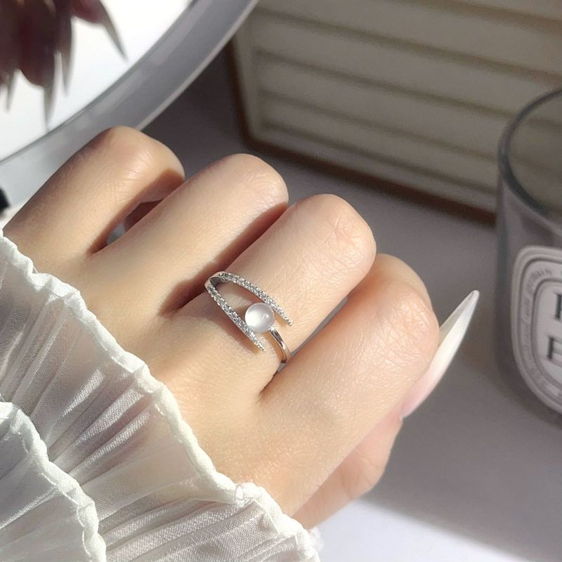 s925纯银戒指女食指戒个性指环百搭几何圆圈相扣玉髓气质开口手饰
