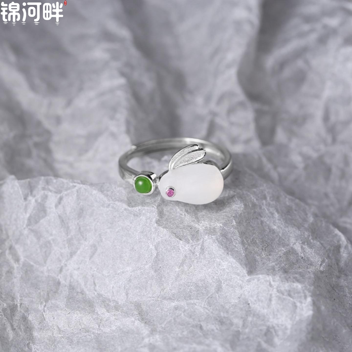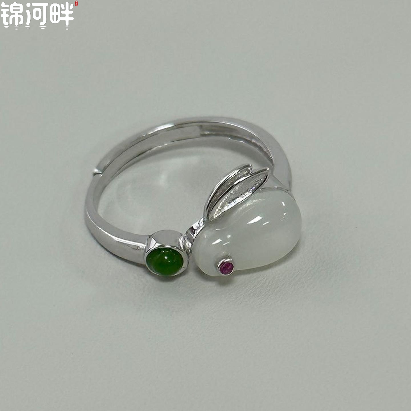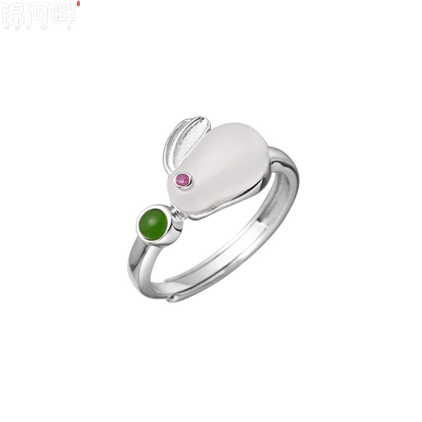 锦河畔 925纯银天然和田玉兔子戒指简约甜美生肖兔年推拉指环高级