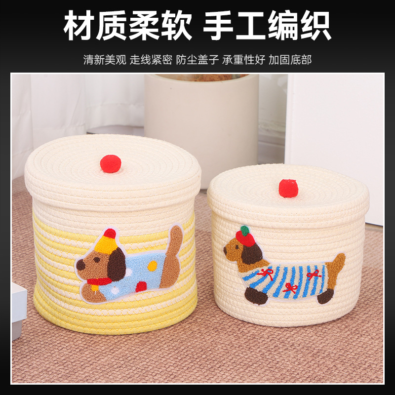 可爱棉线编制收纳筐家居带盖杂物收纳篮桌面防尘摆件收纳篮收纳