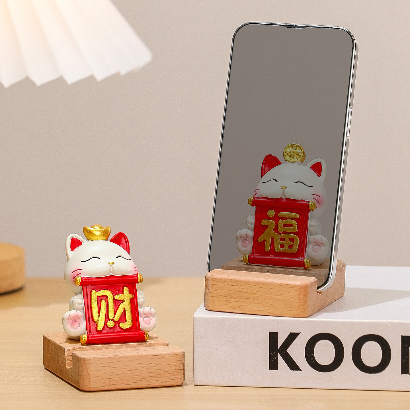 创意招财猫手机支架小摆件简约家居卧室床头办公室桌面懒人手机座