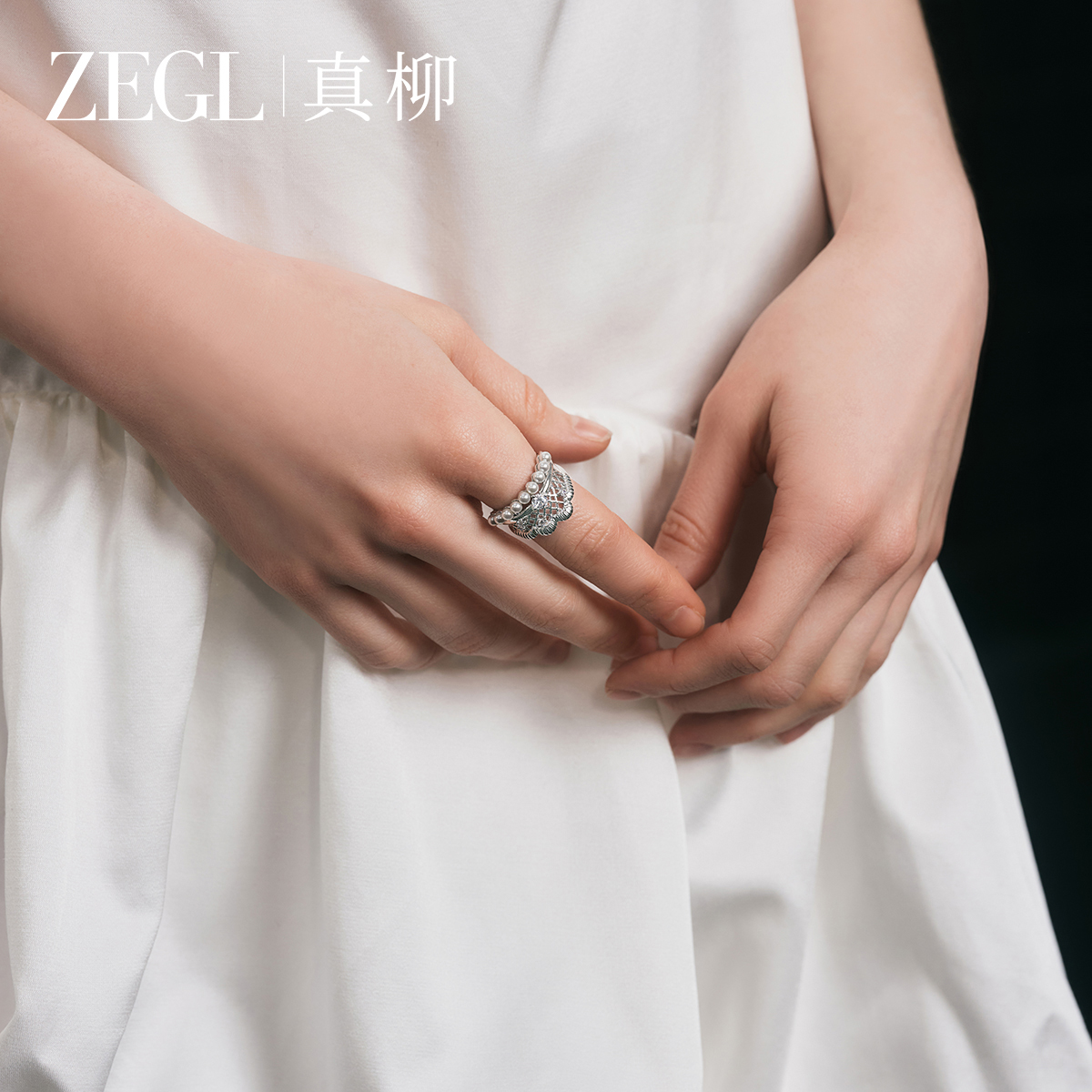 ZEGL设计师芭蕾系列法式戒指女小众设计轻奢秋冬珍珠开口食指戒