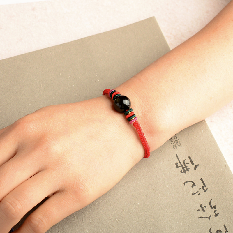 手工编织本命年男女黑曜石手链男女款情侣平安红色绳子本命年手链
