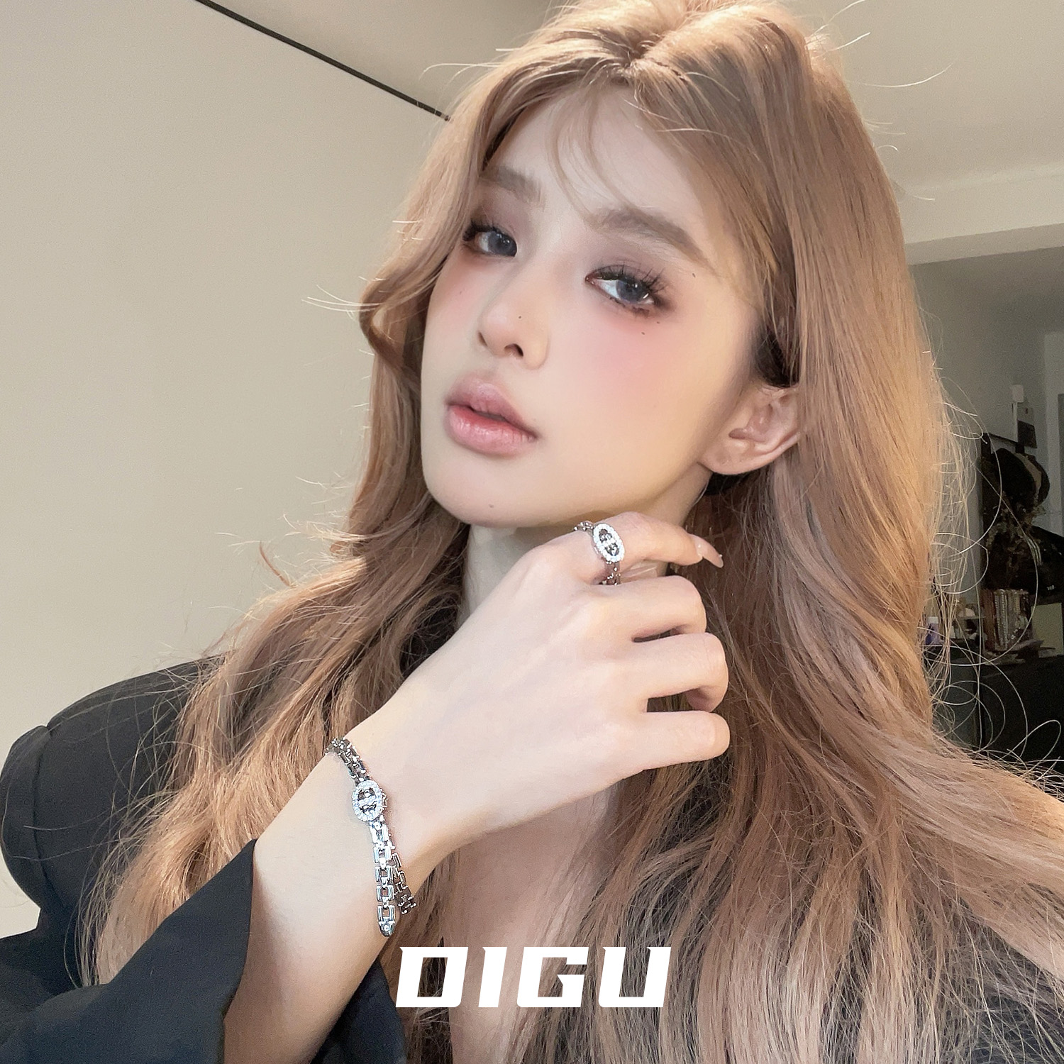 DIGU独特设计感小猪鼻子戒指轻奢高级感金属表带造型食指指环手饰