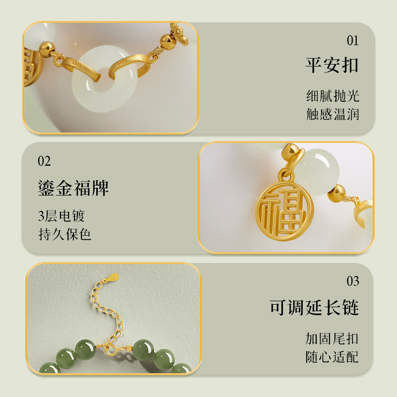 庆祥泰平安扣和田玉手串手链水晶女生手镯生日礼物送女友毕业礼物