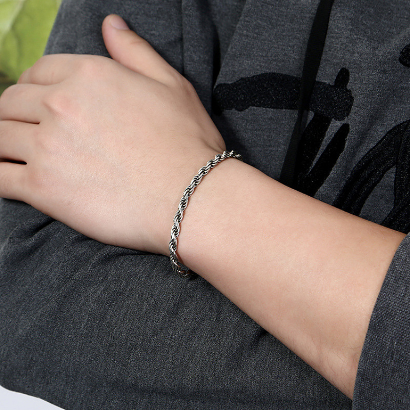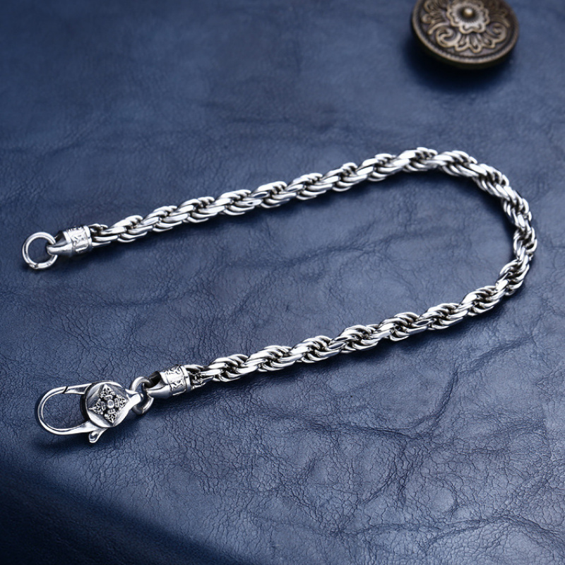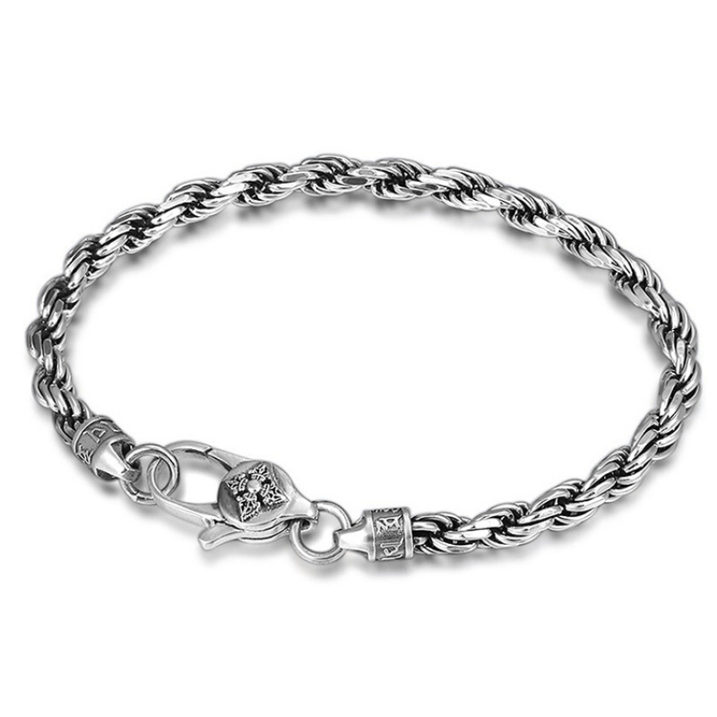 S925银男女士手链复古做旧麻绳编织手链精工打磨简约潮流链子