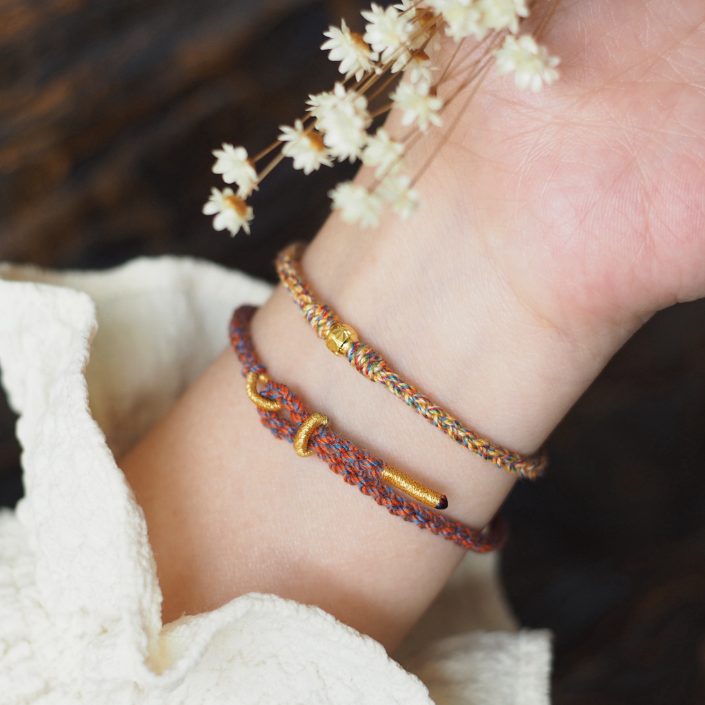 手工编织五彩绳红绳手链足金转运珠路路通手链男女情侣礼物