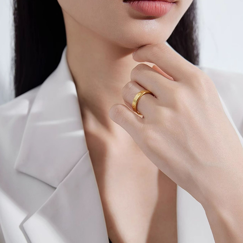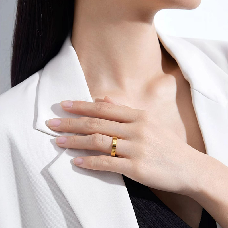 香港 米字戒指男女金包银时尚轻奢素圈一字卡戒love指环情侣对戒
